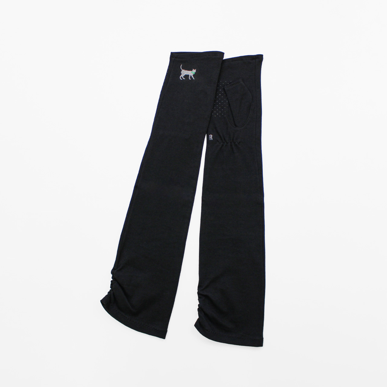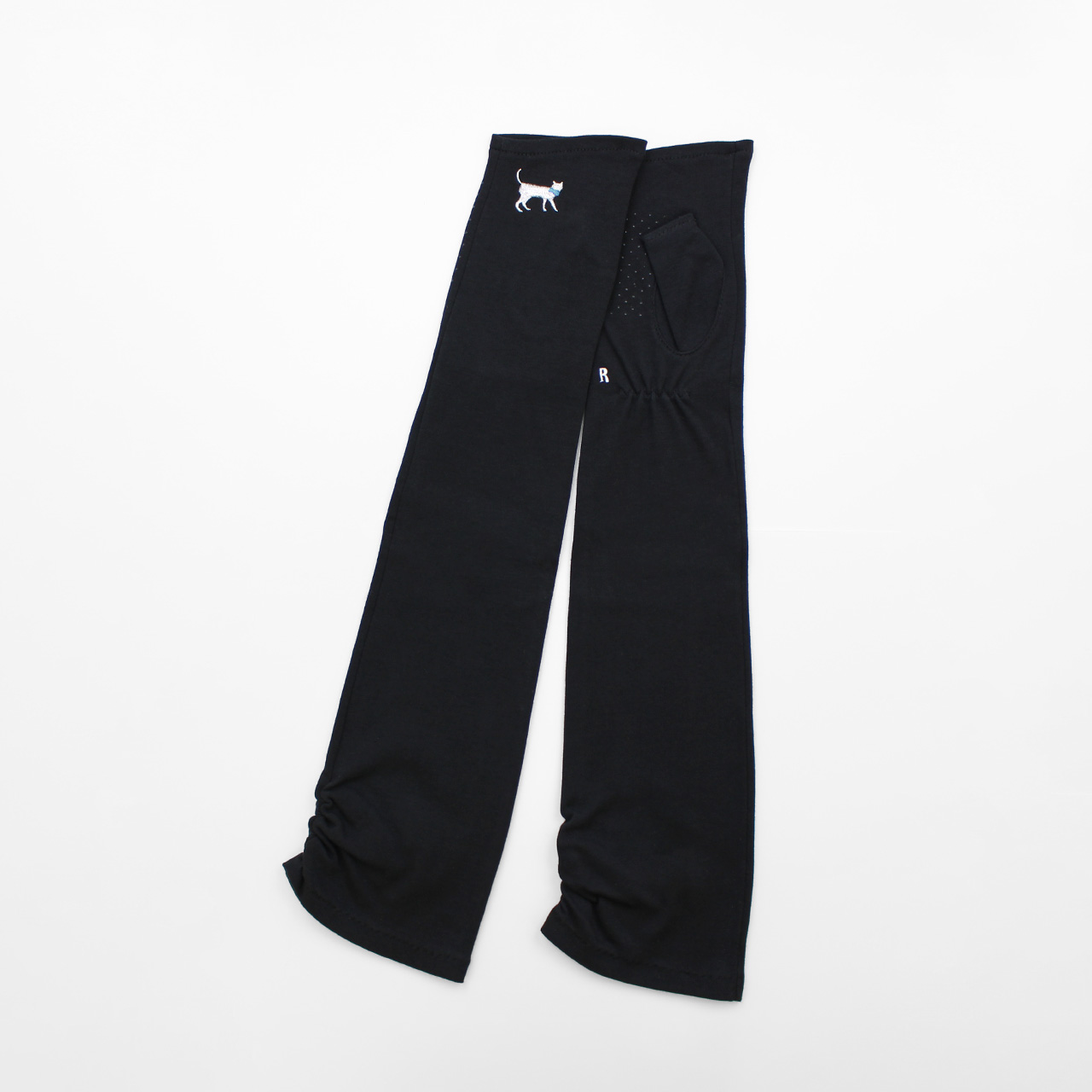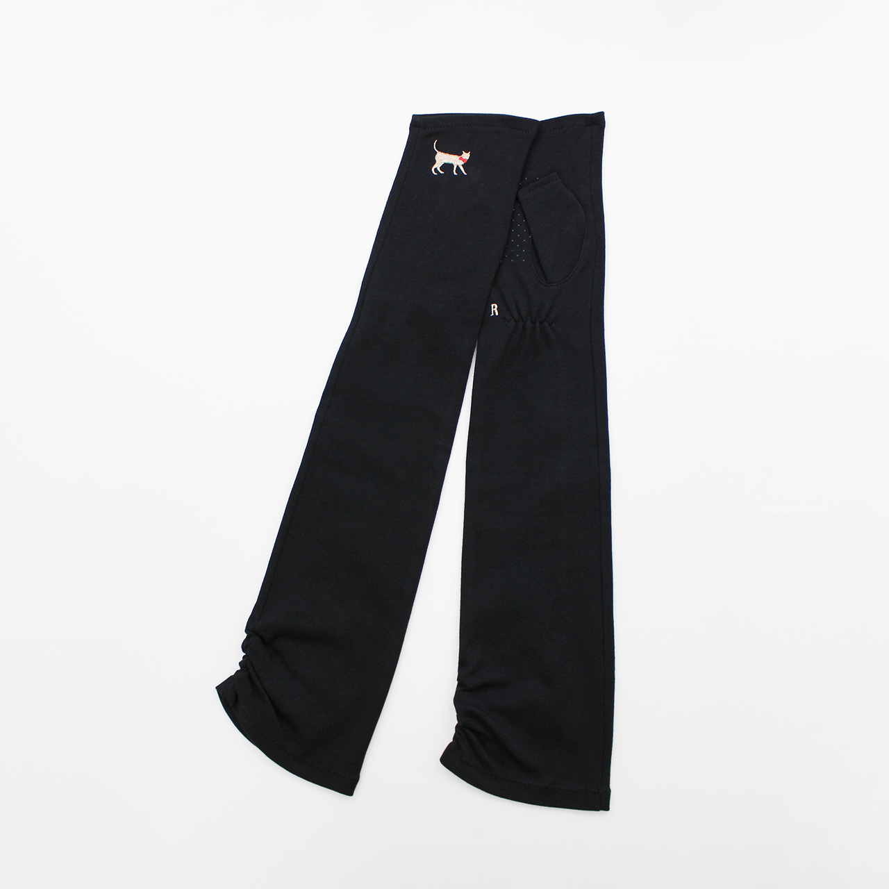 大口注文・法人のお問い合わせはこちらねこの刺繍がかわいい、全長約50cmのフィンガーレスタイプのグローブ。 綿100%のしっとりソフトな素材を使用しています。