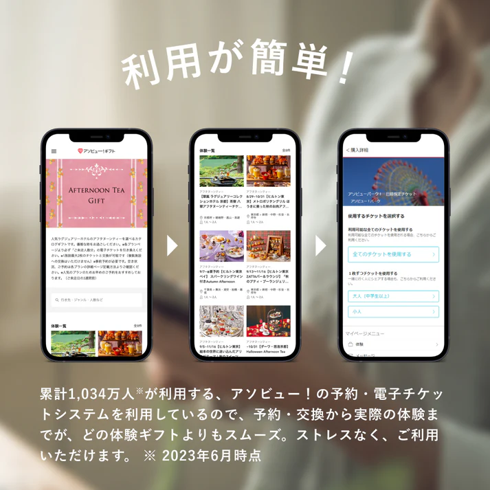 アソビュー!とは、日本最大級規模を誇る“遊び”のマーケットプレイスです。 休日の過ごし方はもちろん、ウィークデイの仕事帰りにも楽しいひとときをもたらしてくれる“遊び”の体験を日本全国で提案。オンライン予約・購入できるプランばかりなので、思い立ったらその場ですぐ、簡単に予約できるのも嬉しいところ。 そんなasoview!が厳選した「体験ギフト」が「asoview!GIFT」シリーズ。お相手やシーンによって使い分けられるよう、さまざまなテーマでセレクションされた体験ギフトチケットが揃います。