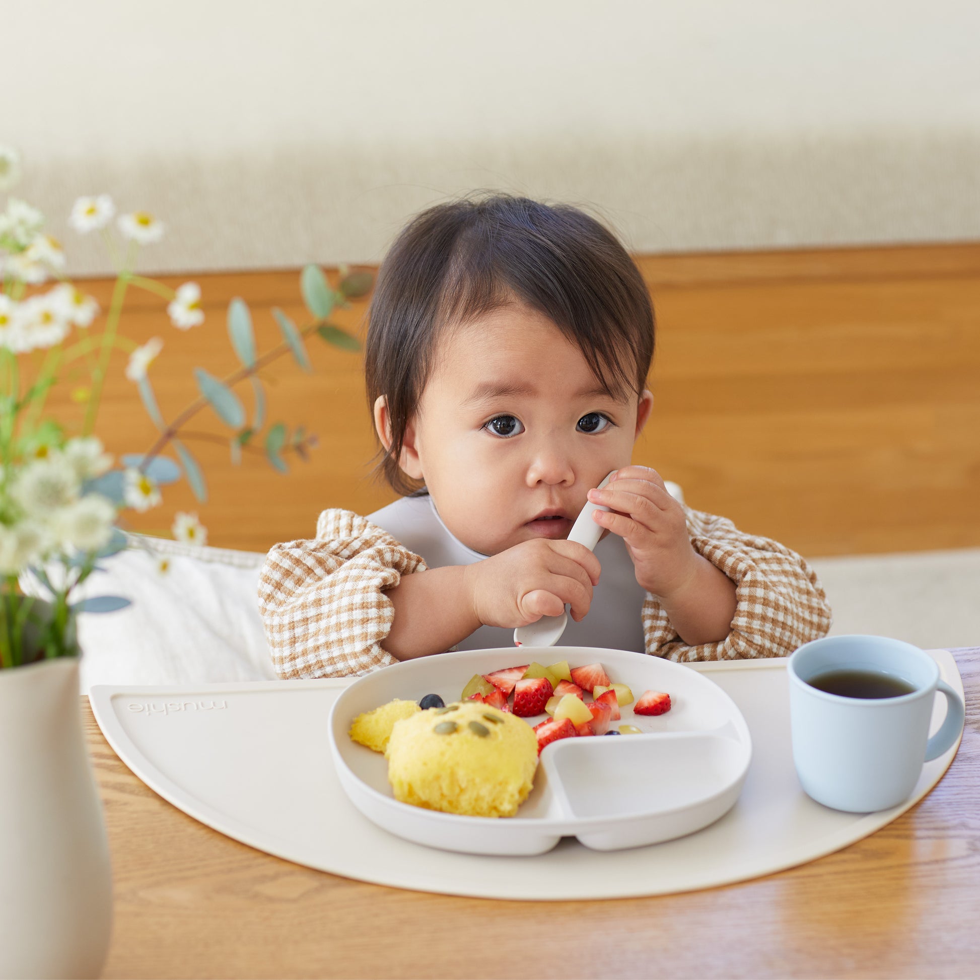 特別な自然由来の素材を使用。陶器のような質感を持ち、BPA/BPS等の有毒物質を含まず、繰り返し使ってもマイクロプラスチックを一切放出しない食器です。