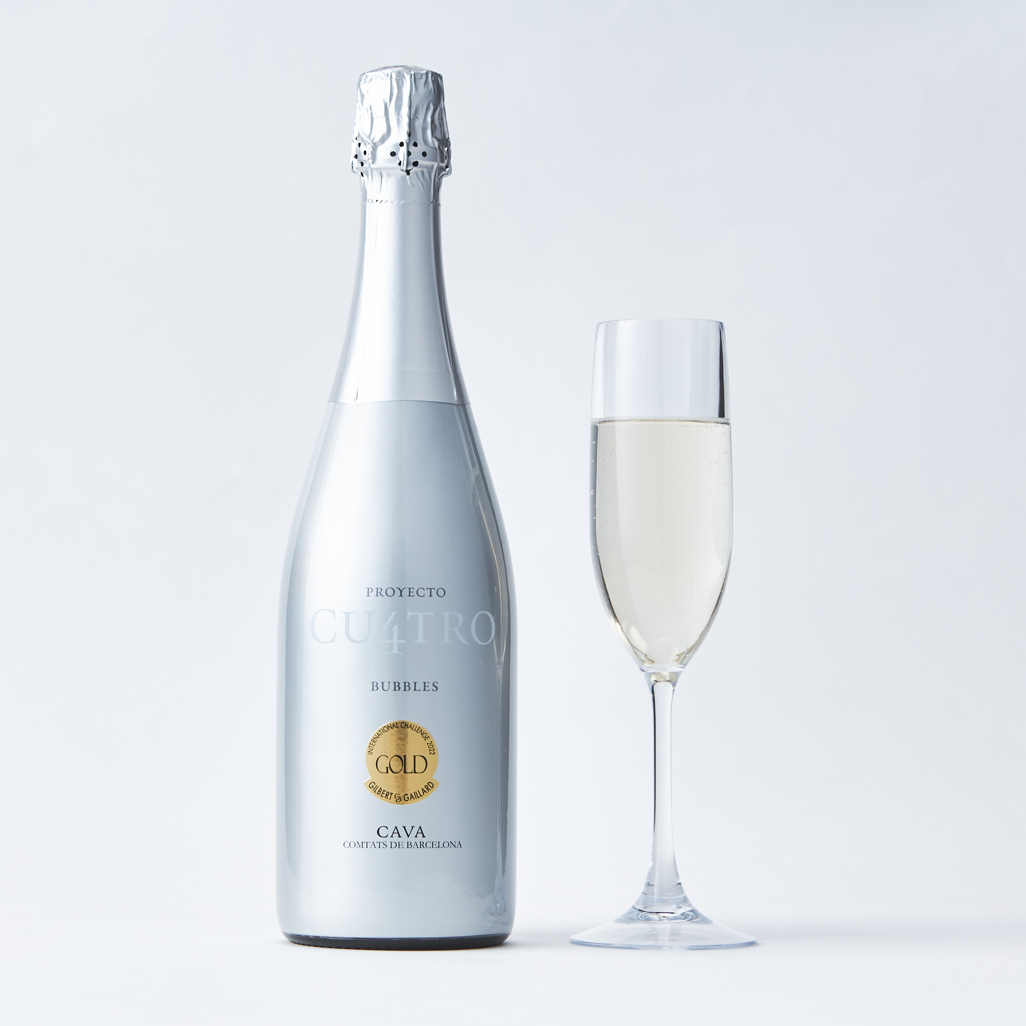 クワトロとは数字の4の意味。4種類のブドウ品種を使って造られることから、この名前がついています。ブドウは全て手摘みされ、香りをより引き出すために低温で非常にゆっくりと発酵が行われます。 濃いピンクの深く美しい色調。グラスに注ぐと、キメの細かい泡が穏やかに立ち上ります。繊細でフレッシュな香りの中にも少しドライフルーツのニュアンスのあるストロベリーなどの赤系果実のアロマが感じられます。いきいきとした酸味が心地よく、バランスの良い味わいが口中に優しく広がっていきます。