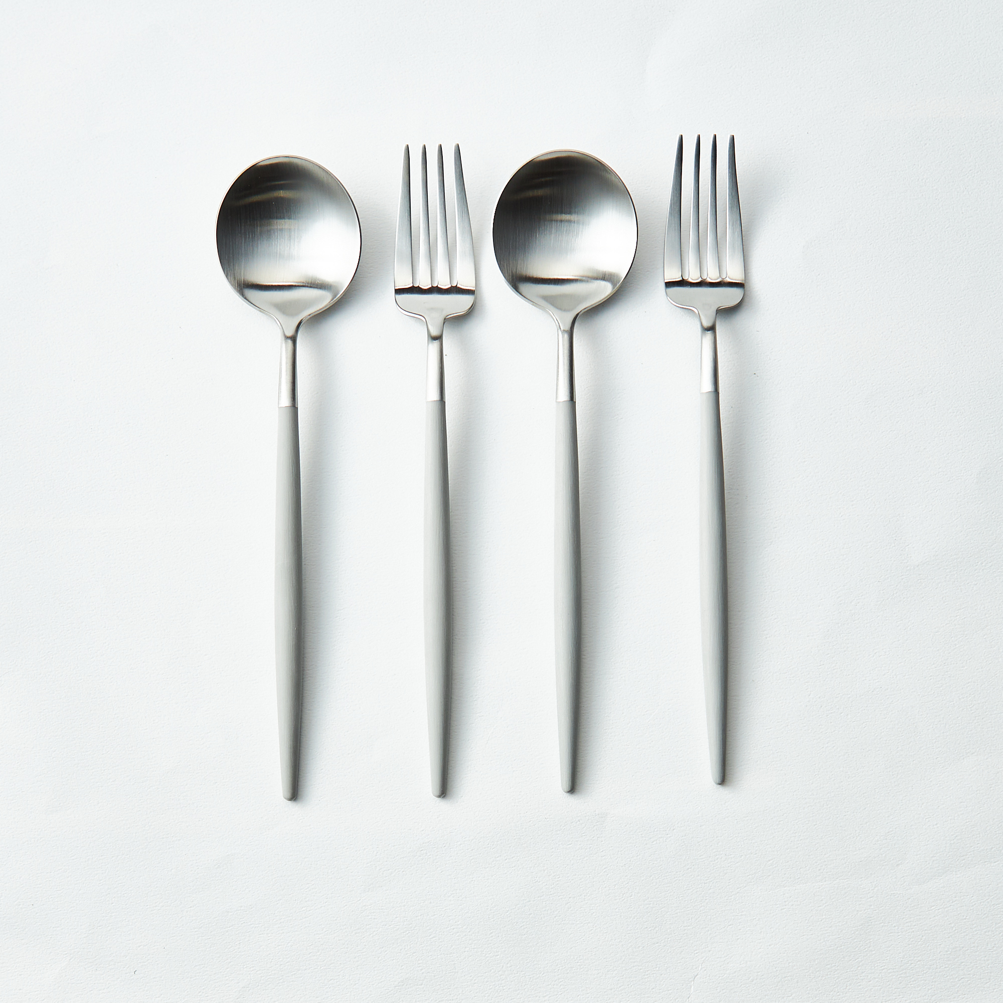ポルトガルのカトラリーメーカー「Cutipol(クチポール)」のゴアライトグレイ×シルバー4本セットです。