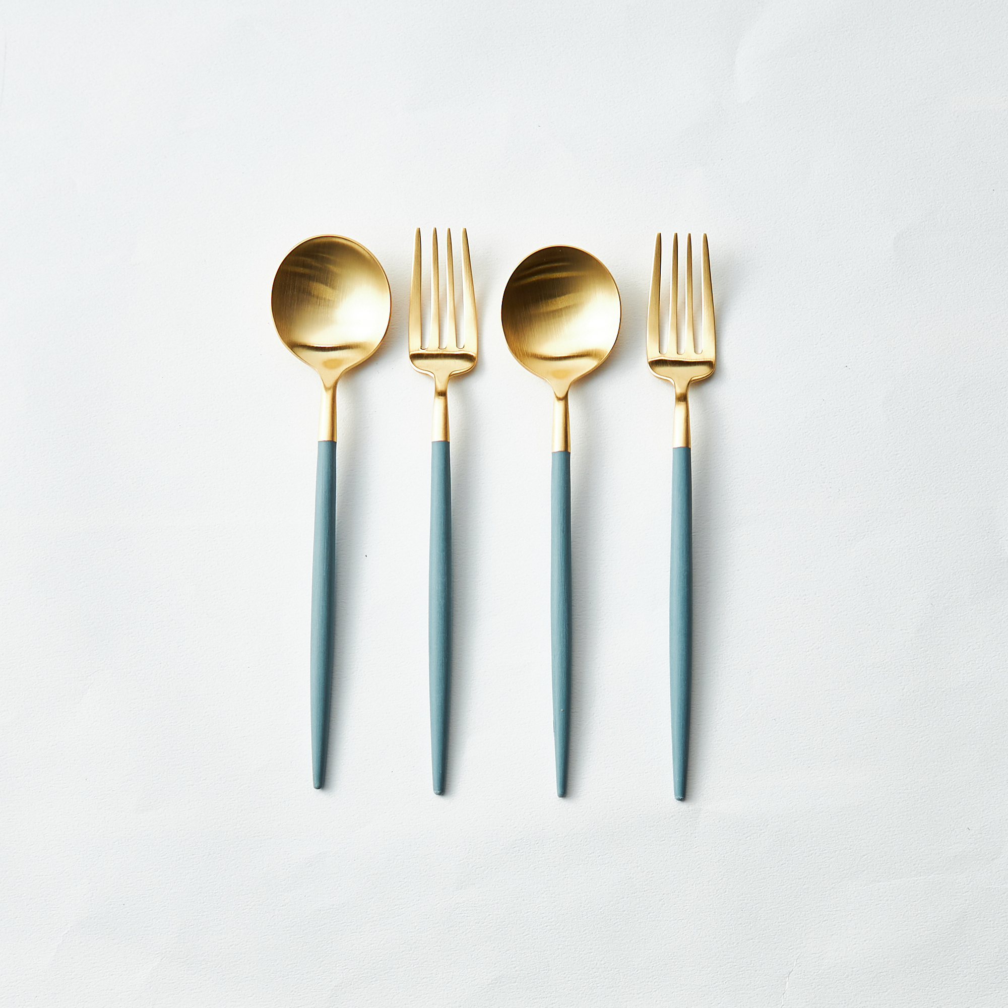 ポルトガルのカトラリーメーカー「クチポール」のゴアブルーセージ×ゴールド4本セットです。