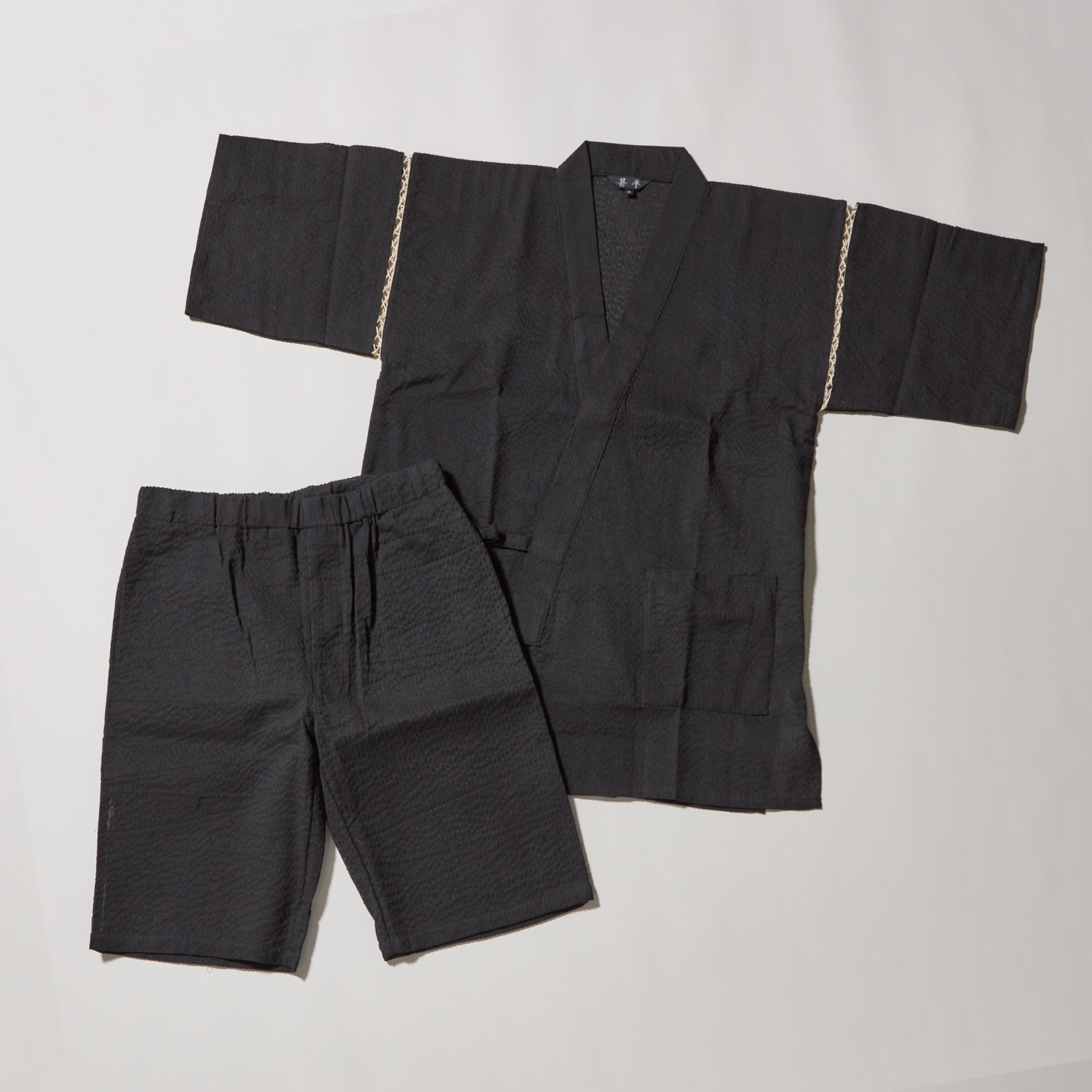 大口注文・法人のお問い合わせはこちら夏の定番アイテムであり、快適な和のくつろぎを叶える甚平を今年もお届けいたします。 しじら織り特有の凸凹のある生地は肌に密着しすぎず、袖のはしごレースで風通しも良いので、暑い時期でも涼やかにお過ごしいただけます。 部屋着やパジャマとしてはもちろん、お散歩やお買い物といったちょっとしたおでかけや、花火大会などの和を感じる場所にもぴったりなアイテムです。