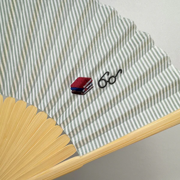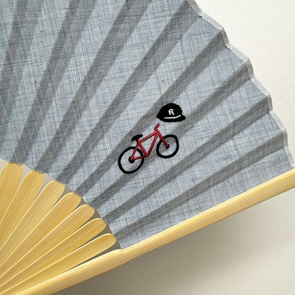メガネと本、自転車と帽子、ビールと枝豆というそれぞれ個性があるワンポイント刺繍が入った扇子です。刺繍に合わせそれぞれ違う印象の生地を使用。シャツの生地のような生地模様が洋服にも合わせやすいデザインです。持ち運びしやすい、扇子本体と合わせたワンポイント刺繍入り扇子袋付きです。