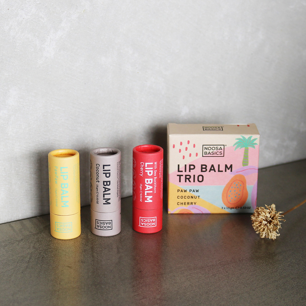 大口注文・法人のお問い合わせはこちら天然植物成分100%の無添加リップバーム3種を詰め合わせたギフトセット。1箱に3種類のリップバームが入っています。 ココアバターやホホバ油などの植物由来保湿成分が、乾燥しがちな唇をしっとりと潤します。