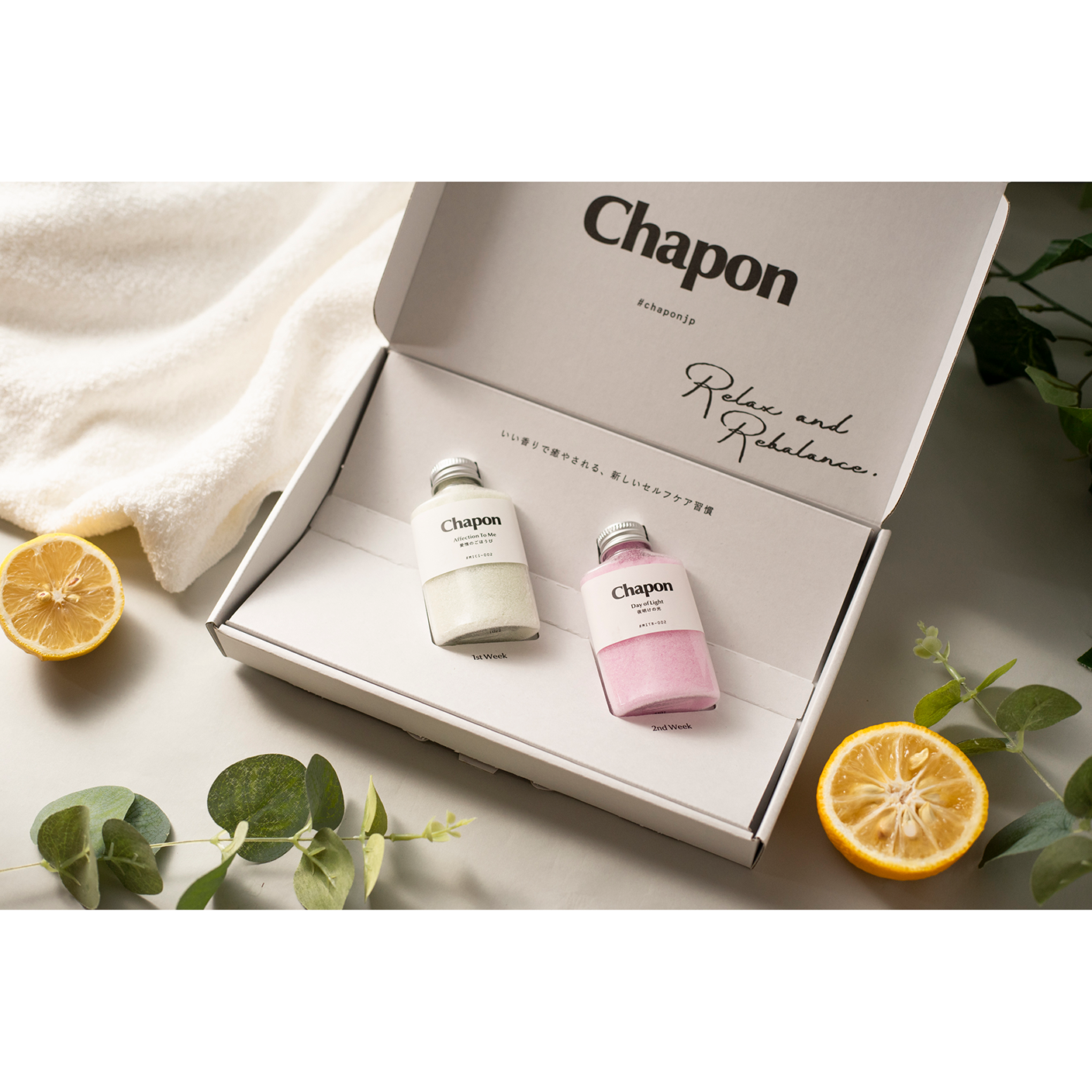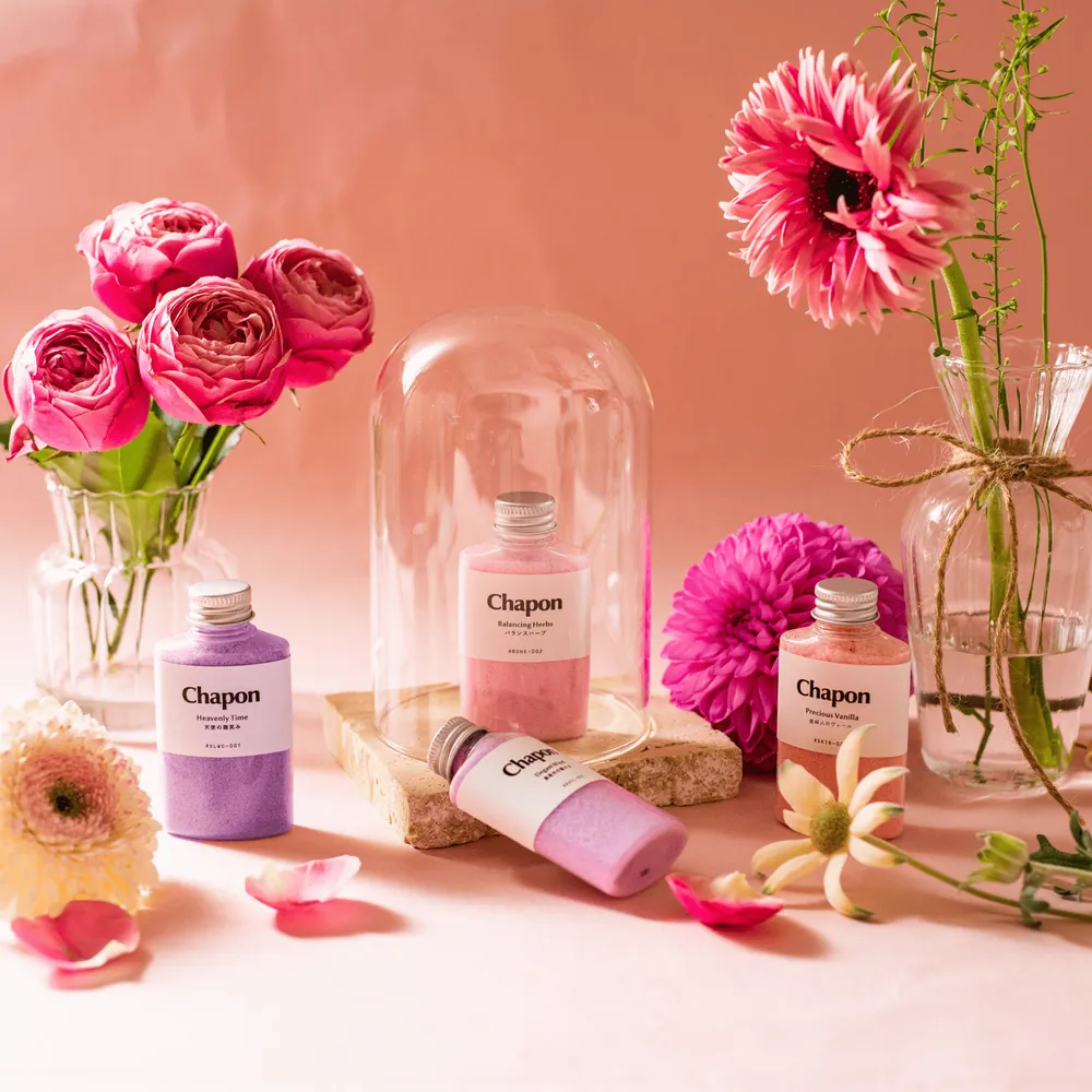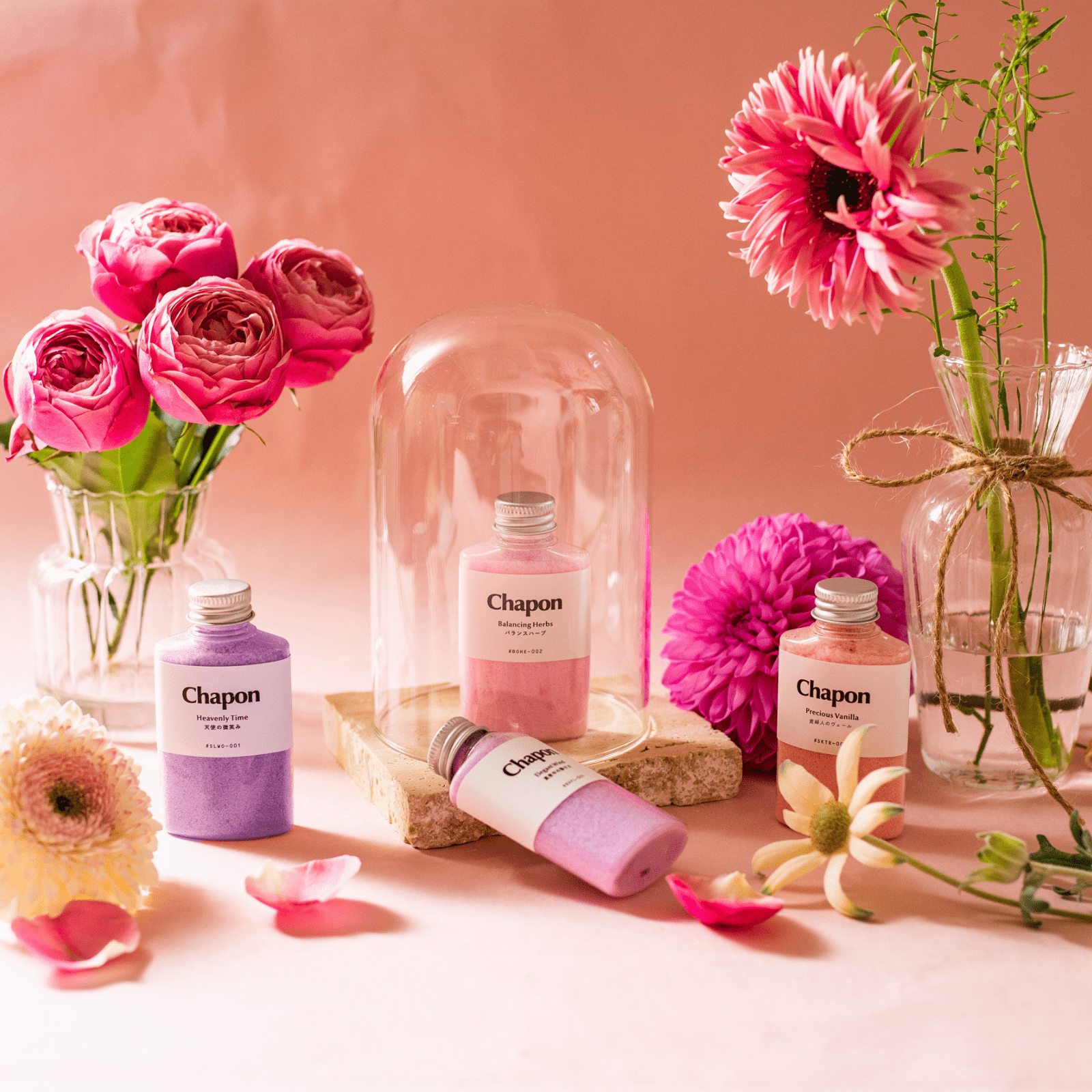 入浴するだけで心身のバランスと整えられる、天然精油だけで作った「Chapon(チャポン)」の入浴剤。ホホバオイル、重曹なども加え、香りを楽しみながらお肌まで整う新しいお風呂体験をお届けする入浴剤です。素材の95%以上を自然由来成分で製造していますので、天然素材がお好きな人にもおすすめです。