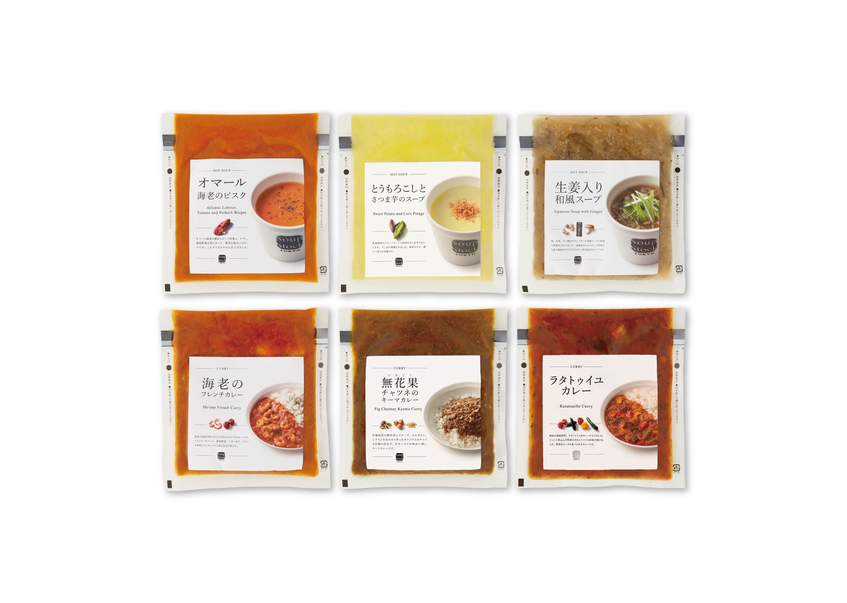 ・オマール海老のビスク×1 ・とうもろこしとさつま芋のスープ×1 ・生姜入り和風スープ×1 ・ラタトゥイユカレー×1 ・海老のフレンチカレー×1 ・無花果チャツネのキーマカレー×1