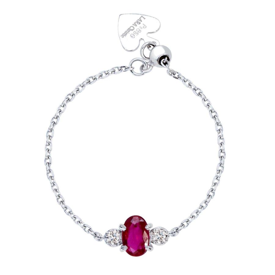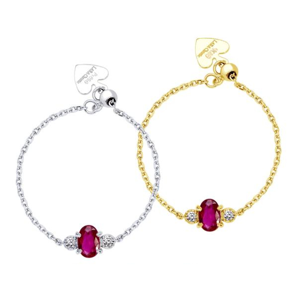 さらりと肌になじむ、シンプルなチェーンリング。 きらめくダイヤモンドと深紅のルビーが大人の女性を一層引き立てる繊細なデザインでお手元を華やかに演出してくれます。 スライドアジャスターを採用し、最大18号まで自由自在に調整可能なサイズフリーなリング。 その日の気分や他の指輪との重ね付けに合わせて指を変えて着用できます。