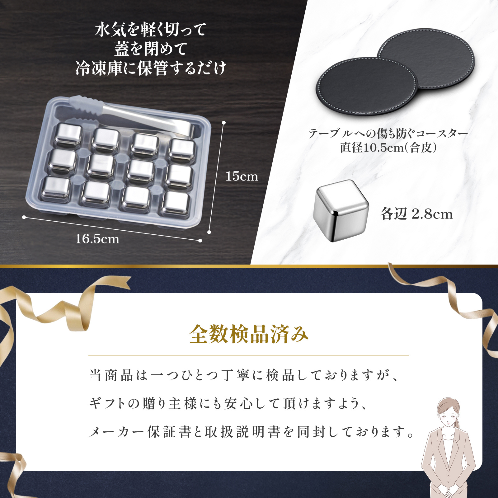 ギフトをお贈りするお相手様が一人でこのビアキューブを使用して、至福の時間を愉しむのはもちろん、二人でもご利用いただけるようにコースターを2枚お付けしたギフトセットです。 お相手様のパートナーの方も含めた家庭に至福の時間を、ぜひこのビアキューブでお贈りくださいませ。