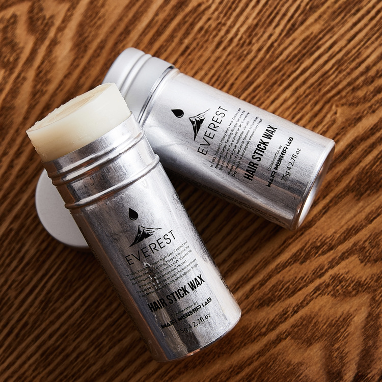 人気メアメイクアップアーティストRYO氏が手掛ける〈ヘアモンスターラボ〉と〈エベレスト〉のコラボレーションヘアワックス。〈ヘアモンスターラボ〉は髪の悩みやコンプレックスにアプローチするヘアブランド。プッシュスライド式で、手を汚すことなくいつでも使えるスティックタイプです。