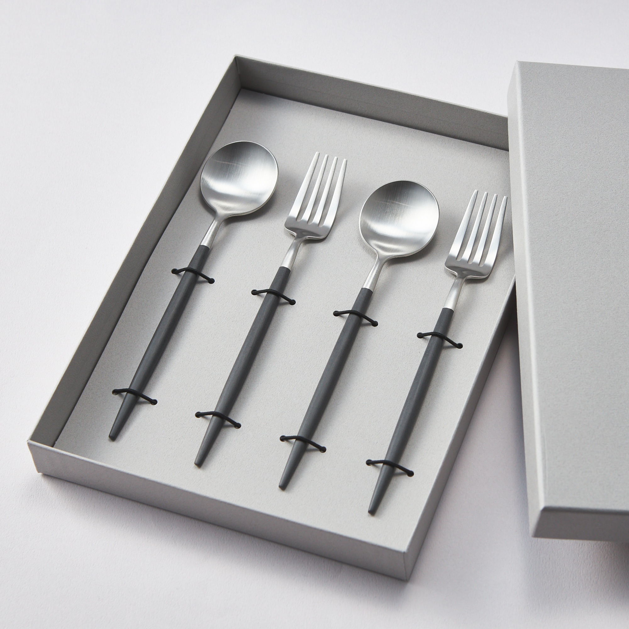 | ゴアブラック×シルバー デザートペア4本セット | 【内容】 ・デザートスプーン×2 ・デザートフォーク×2 |