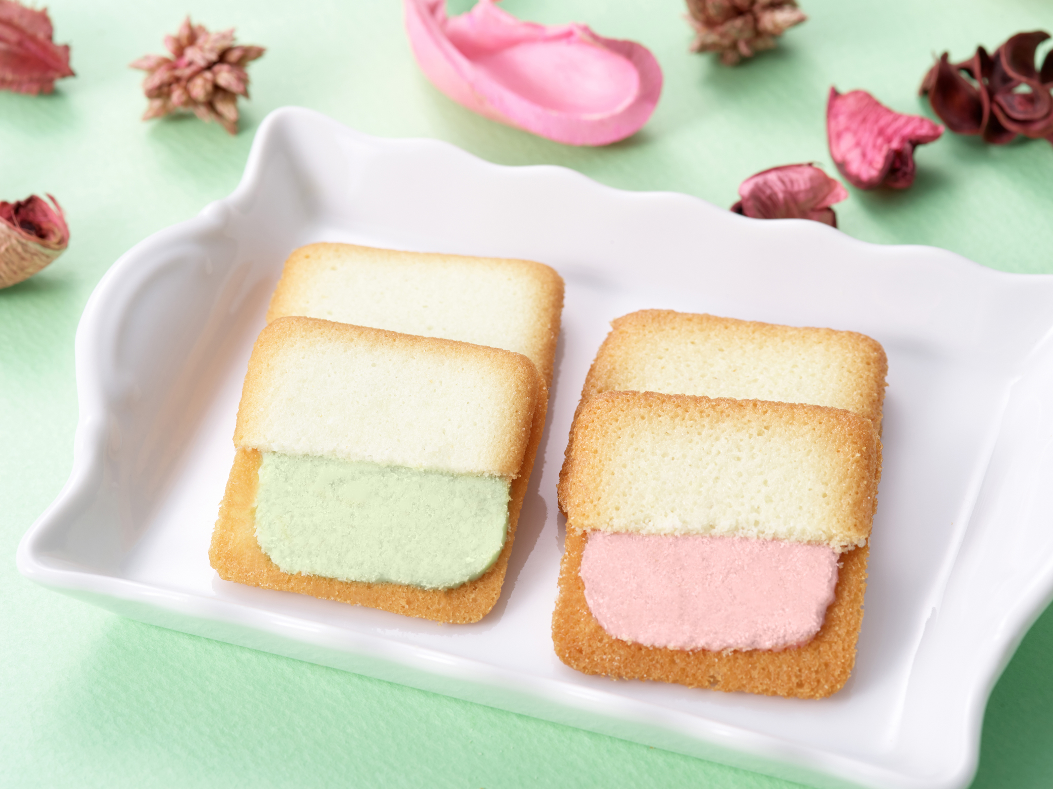 薄くさくさくした食感のクッキーに、自然な甘みのいちごのチョコレートをサンドしました。