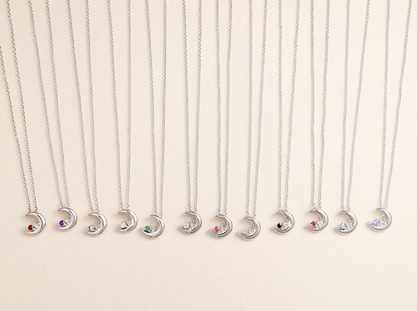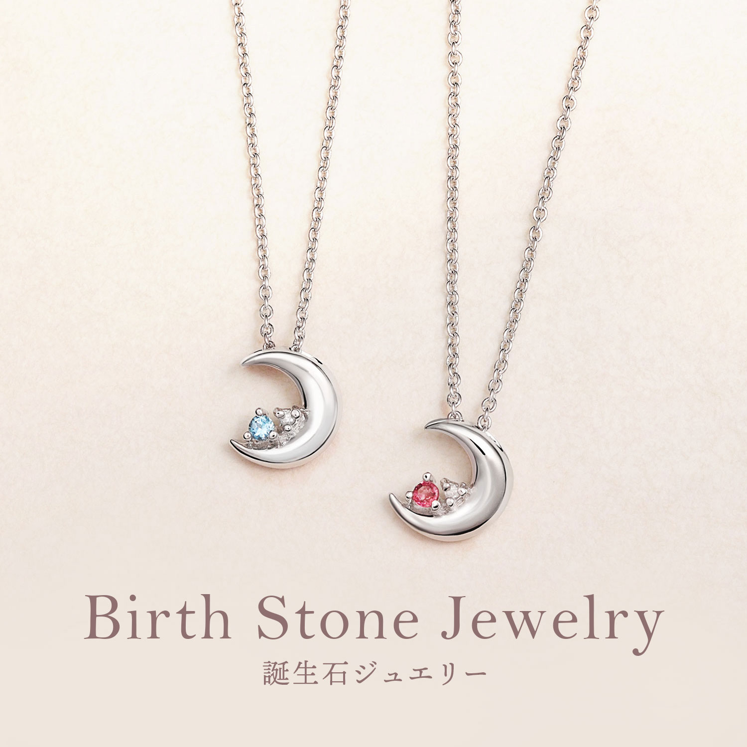 月に煌めくツインストーンの輝き、誕生石を用いられた人気なモチーフネックレスです。