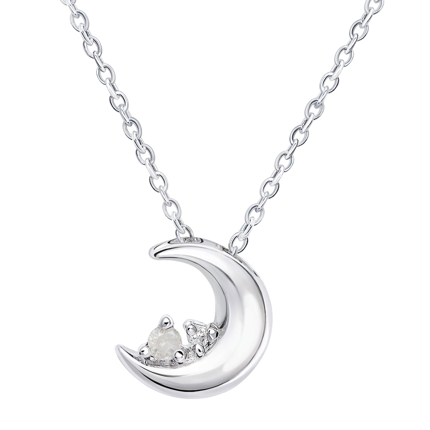 胸元にパッと華やかさをプラスし、大人の魅力を引き立てる、ムーンネックレスです。