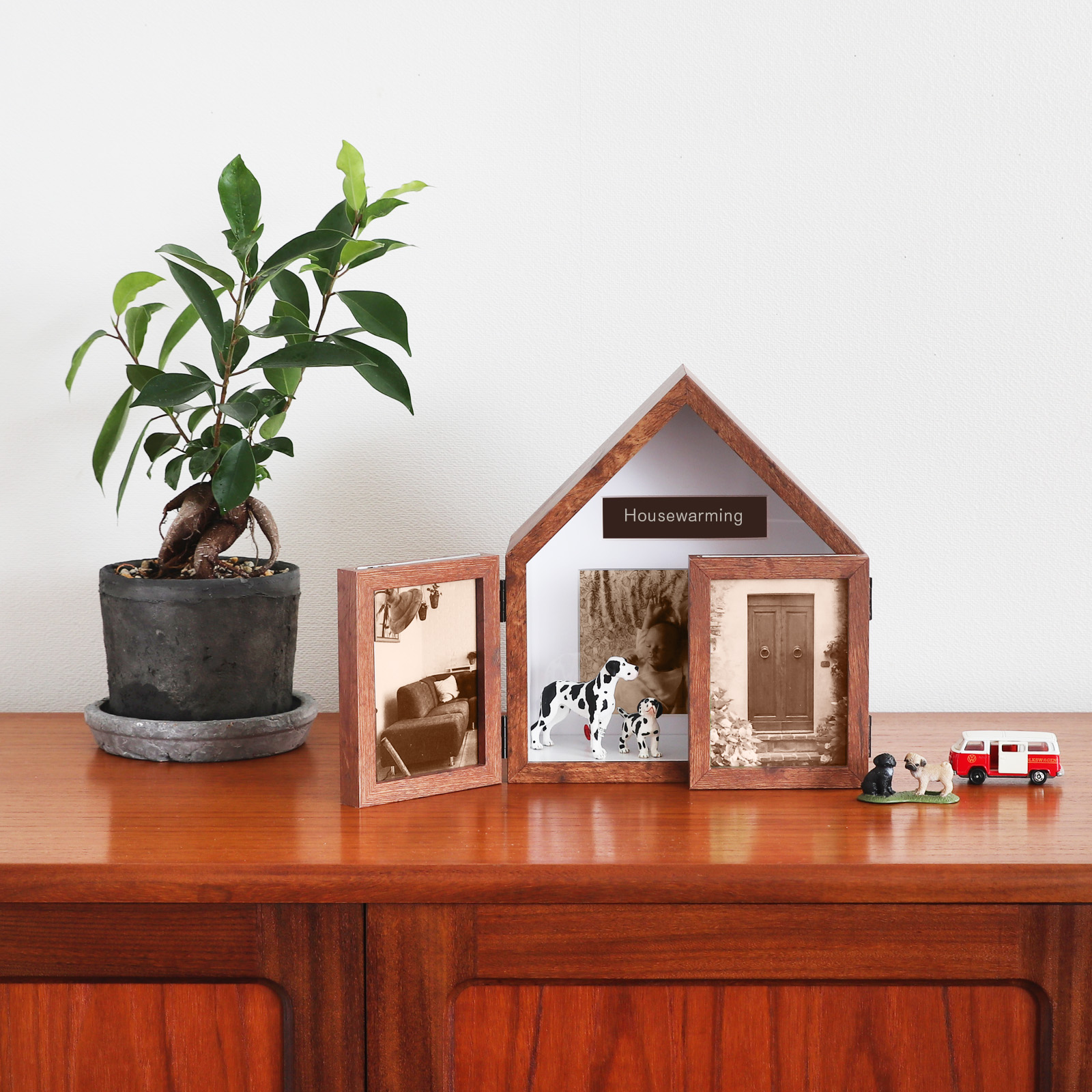 RUS-02は、家型のフォトフレームで、奥行きがあるため小物を飾ることも可能。全面扉は開閉でき、両面に写真を飾れる多機能デザインです。