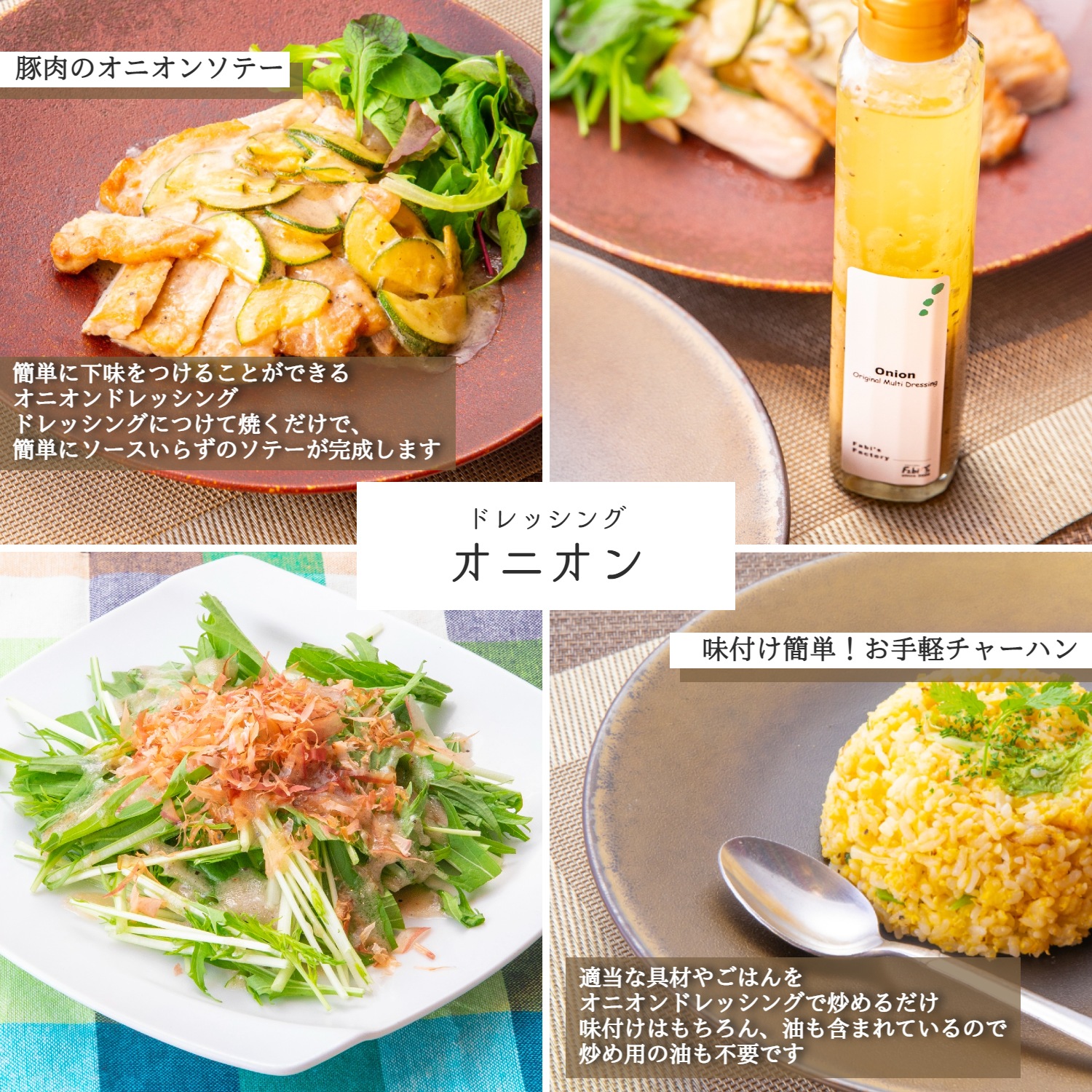 | 内容量/数量 | オニオンドレッシング140g、ブラッドオレンジドレッシング150g、バルサミコドレッシング150g |