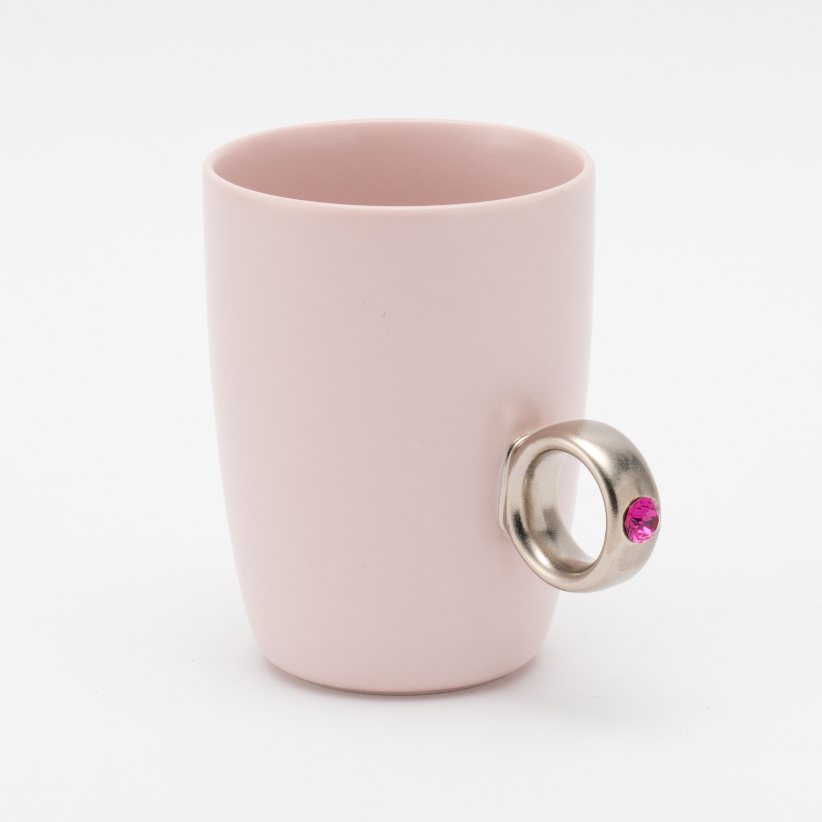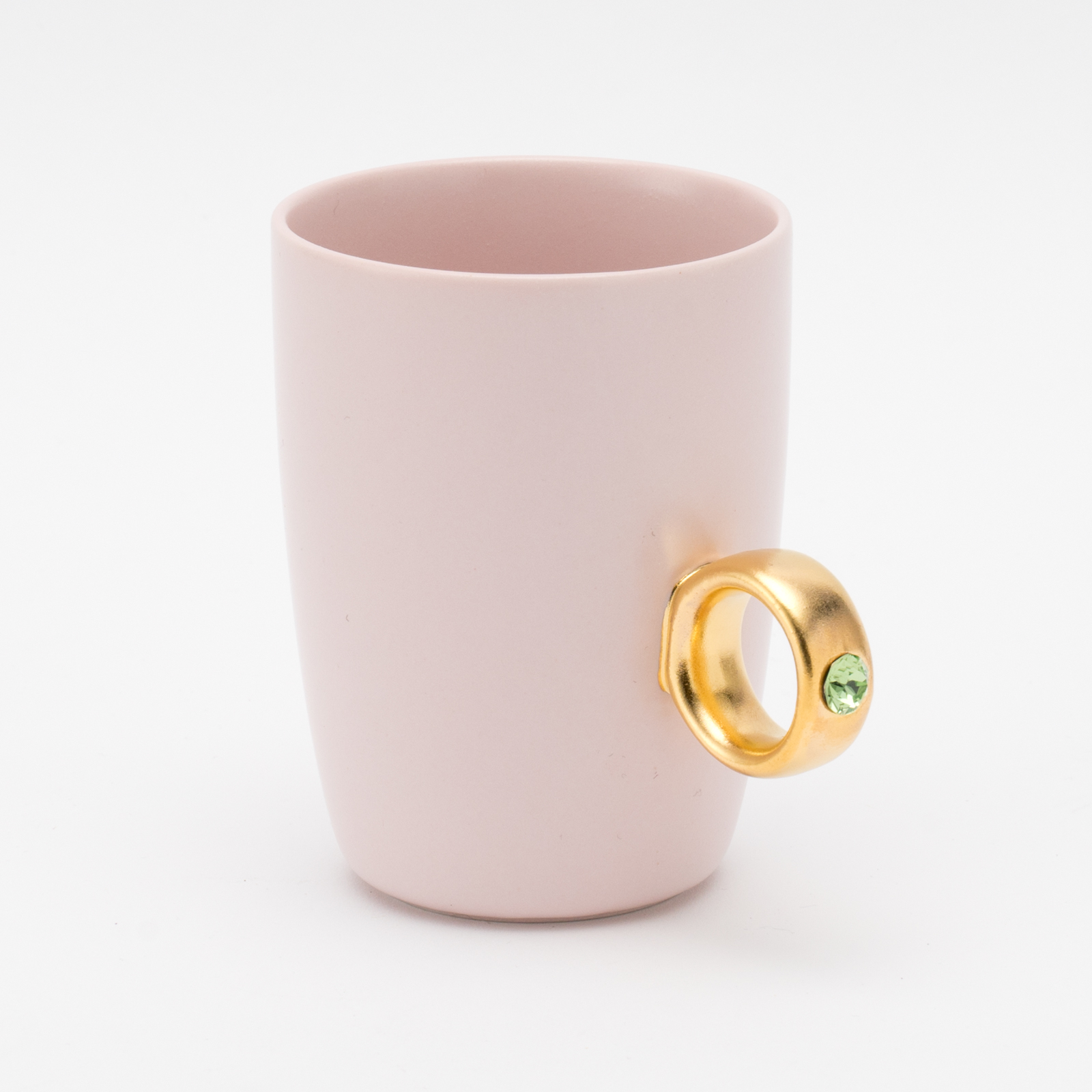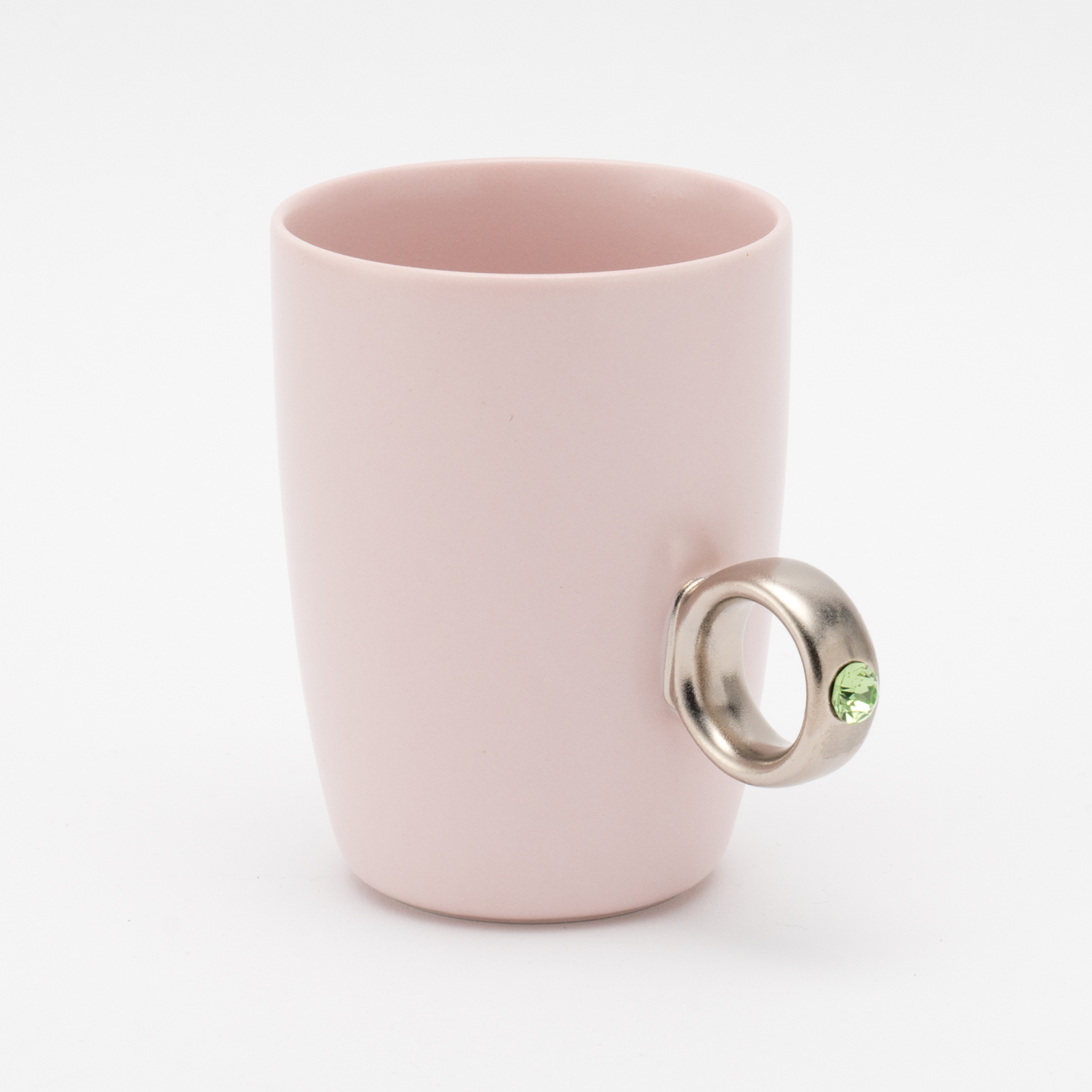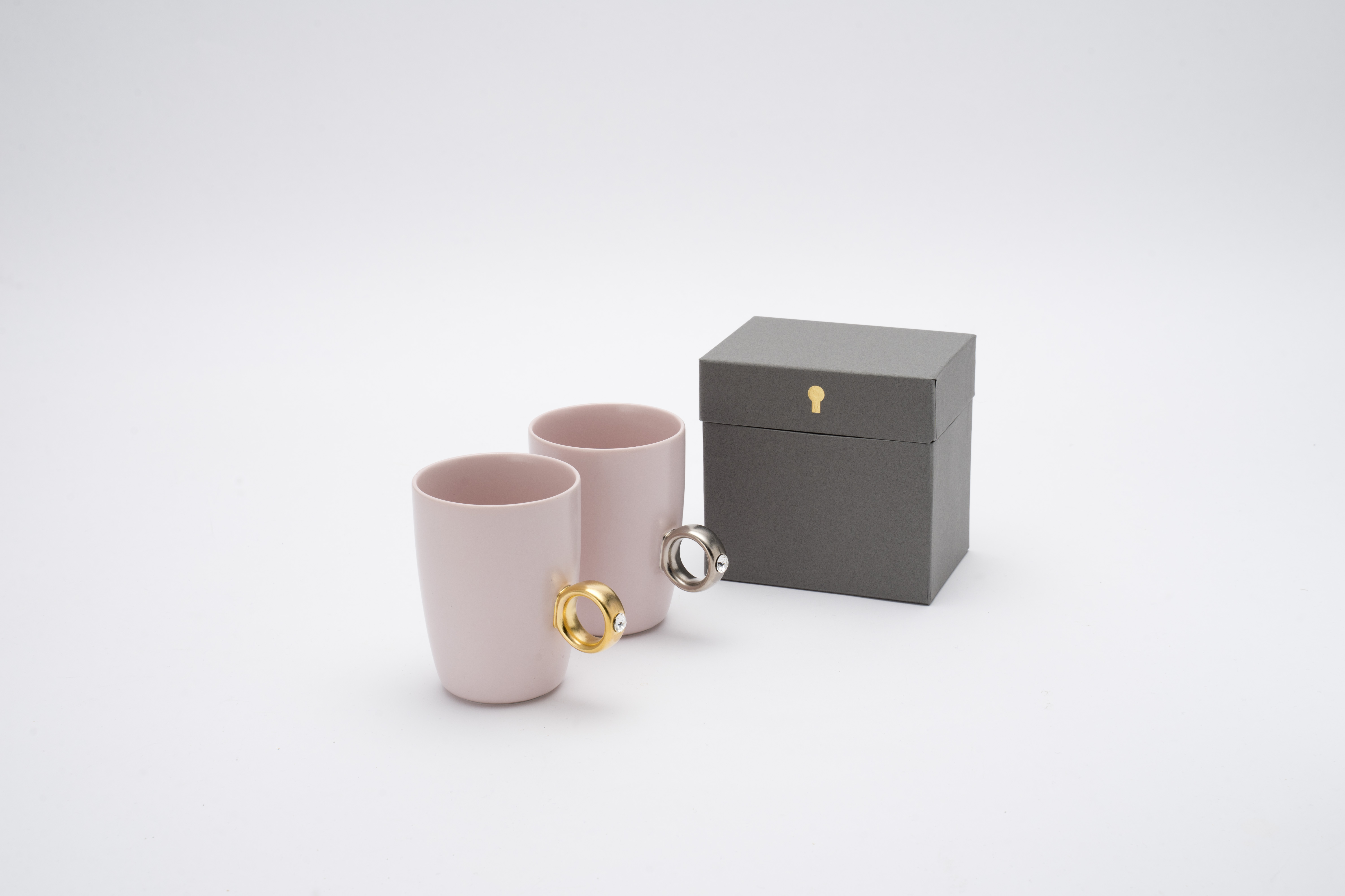 カップ本体はセミマットな釉薬に定番のホワイト、くすみピンク、トレンドのニュアンスグレーと、大人可愛いカラーをご用意。 また、クリスタルガラスのカラーは石の持つ意味が込められています。 お好きなカップ・リング・ストーンカラーの組み合わせを2つお選びください。