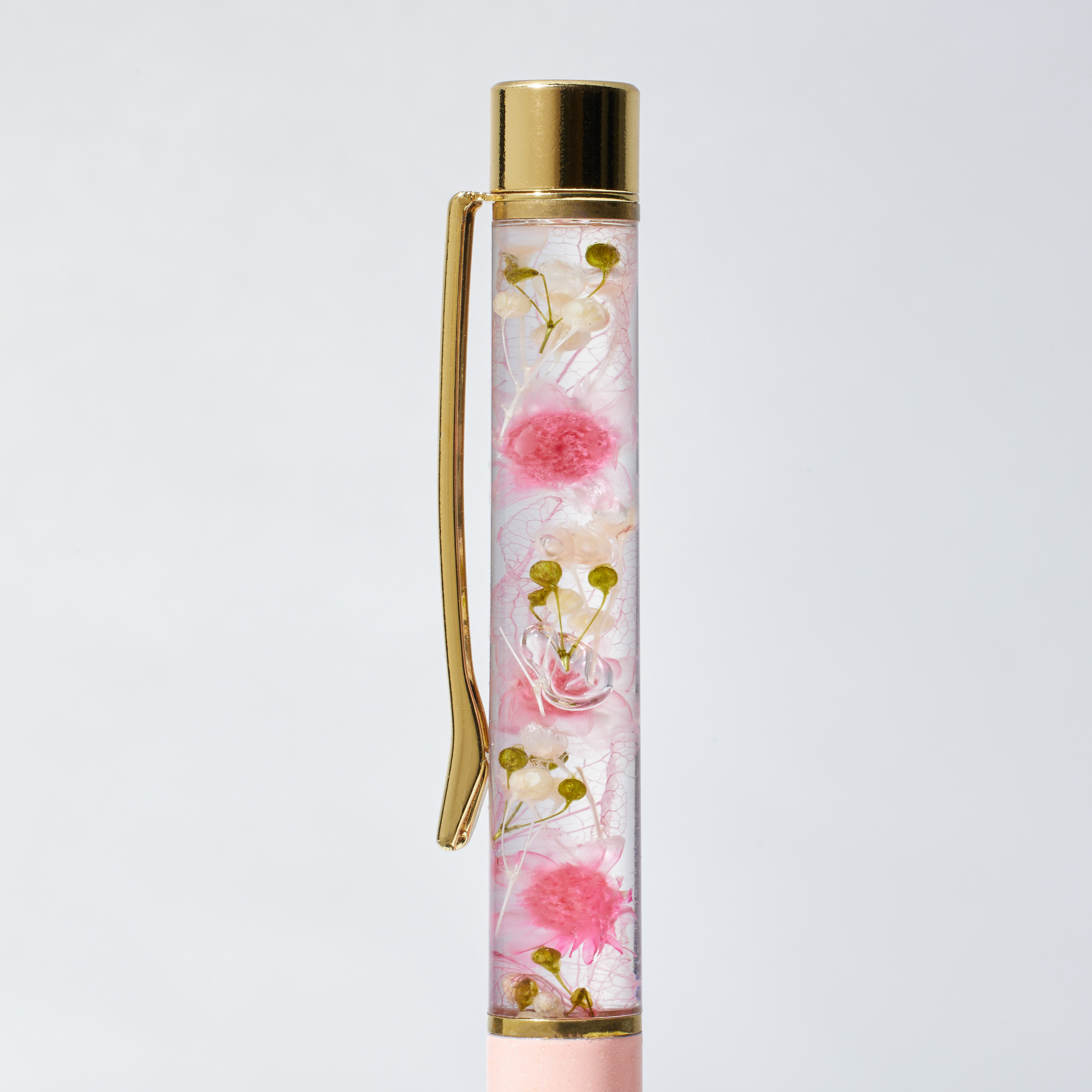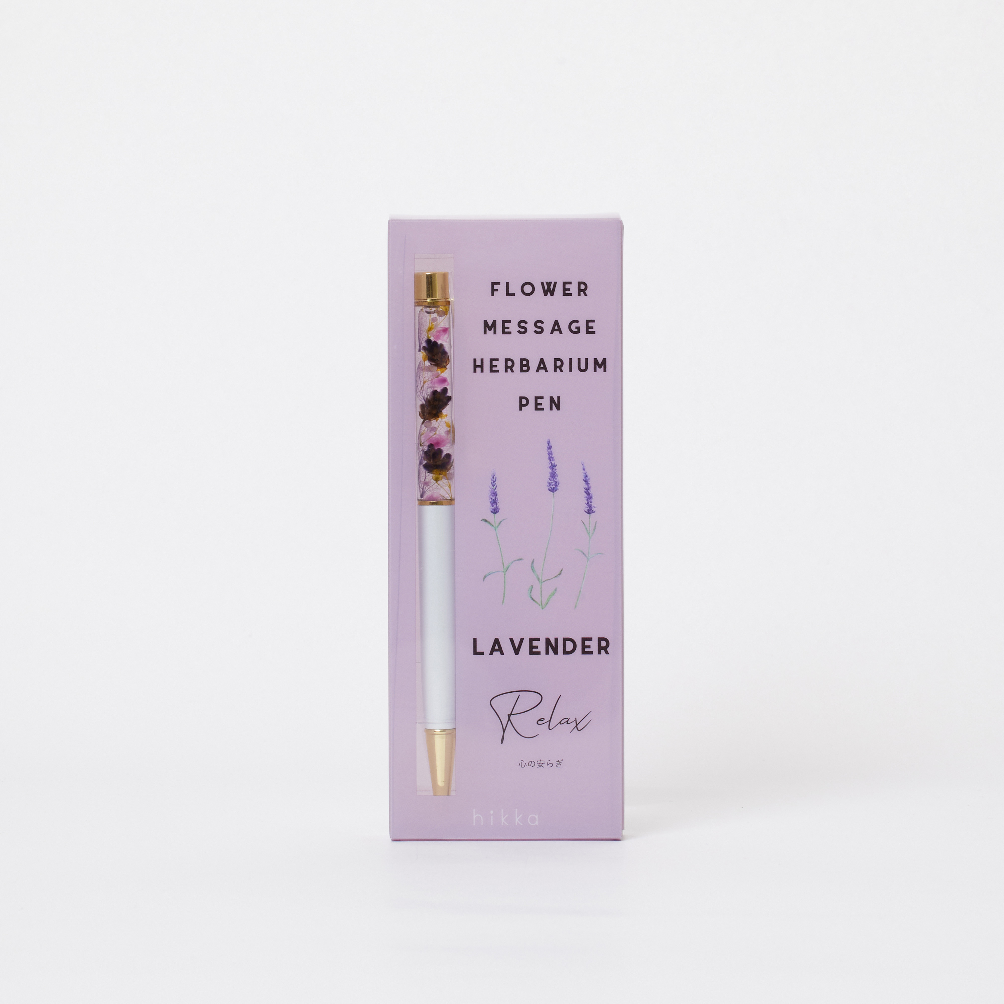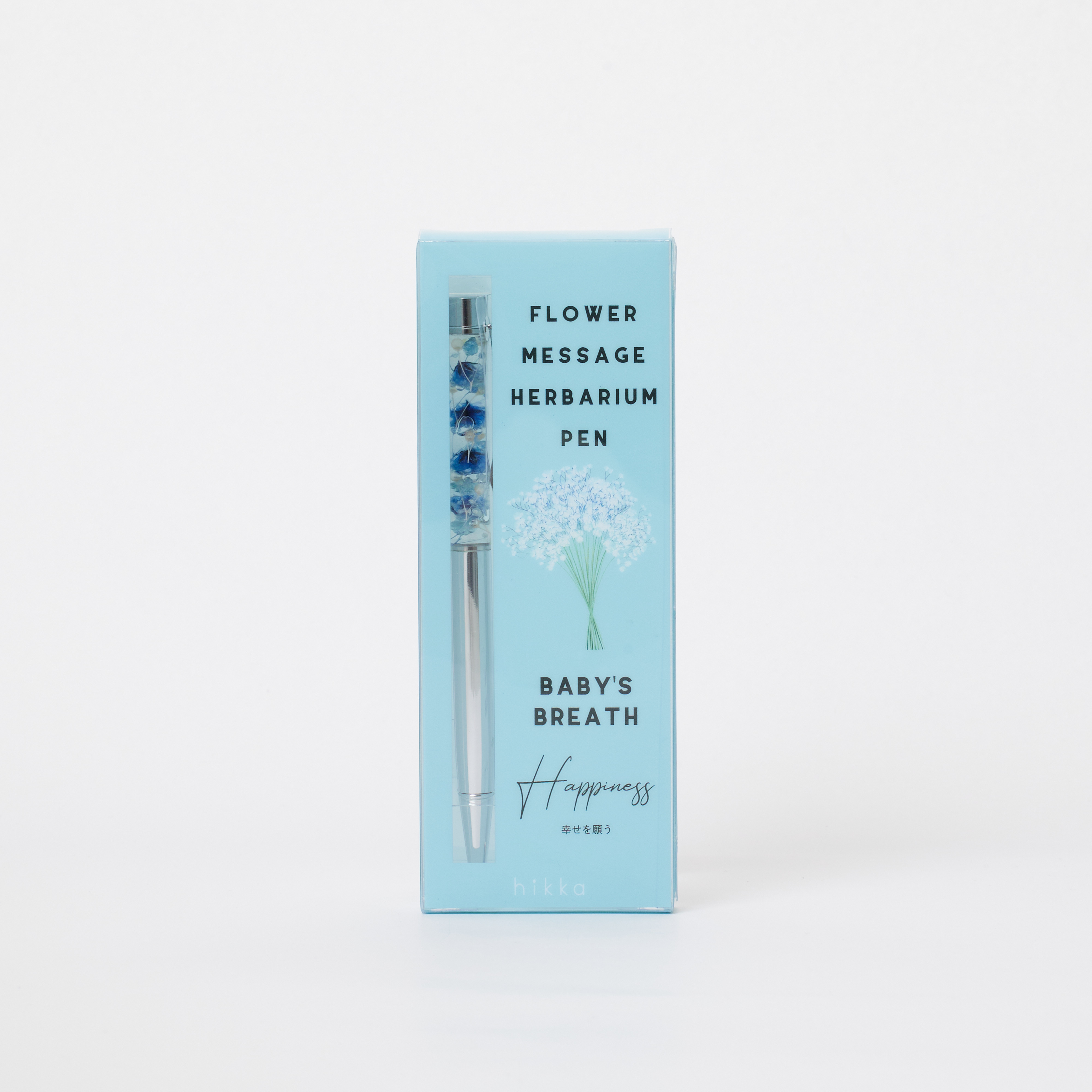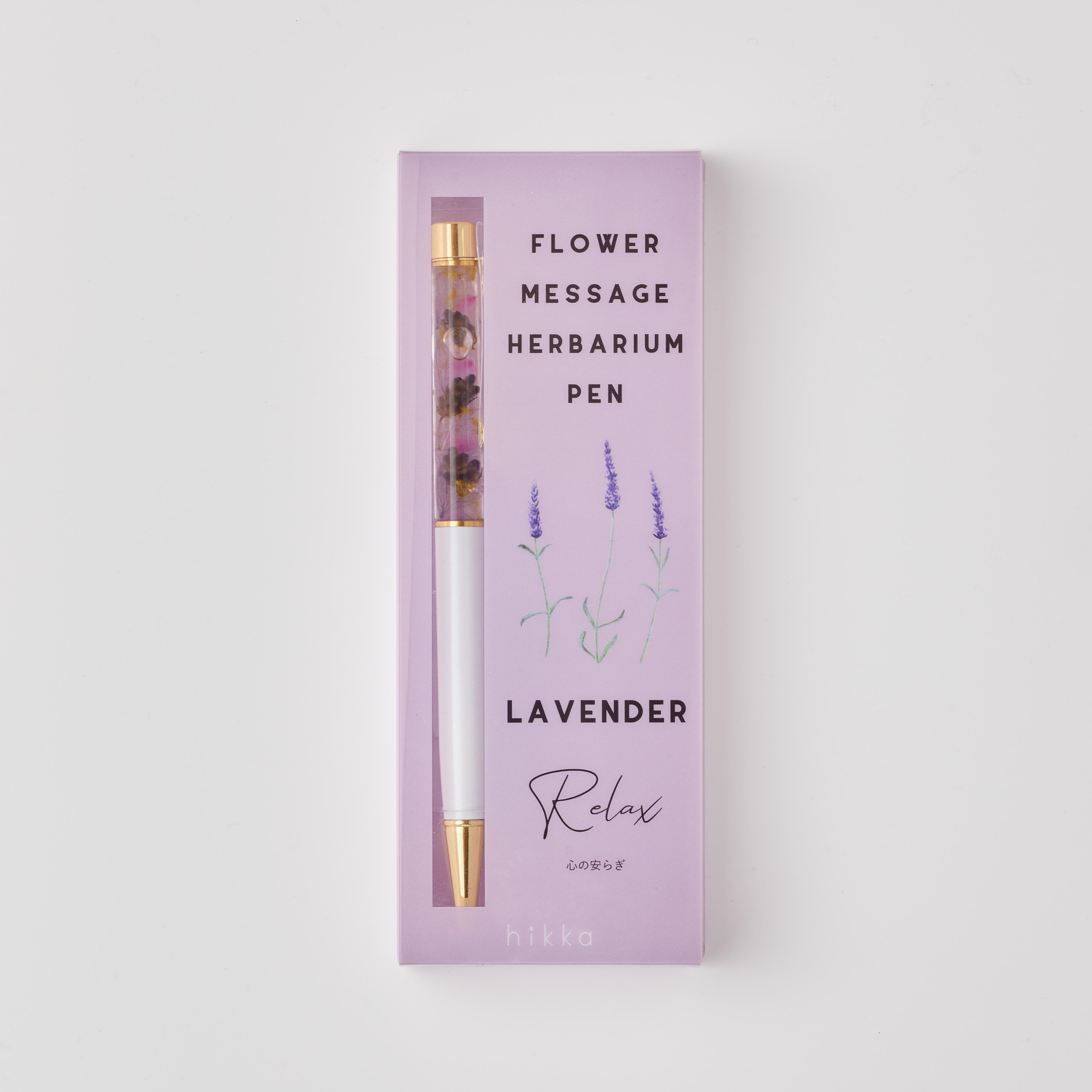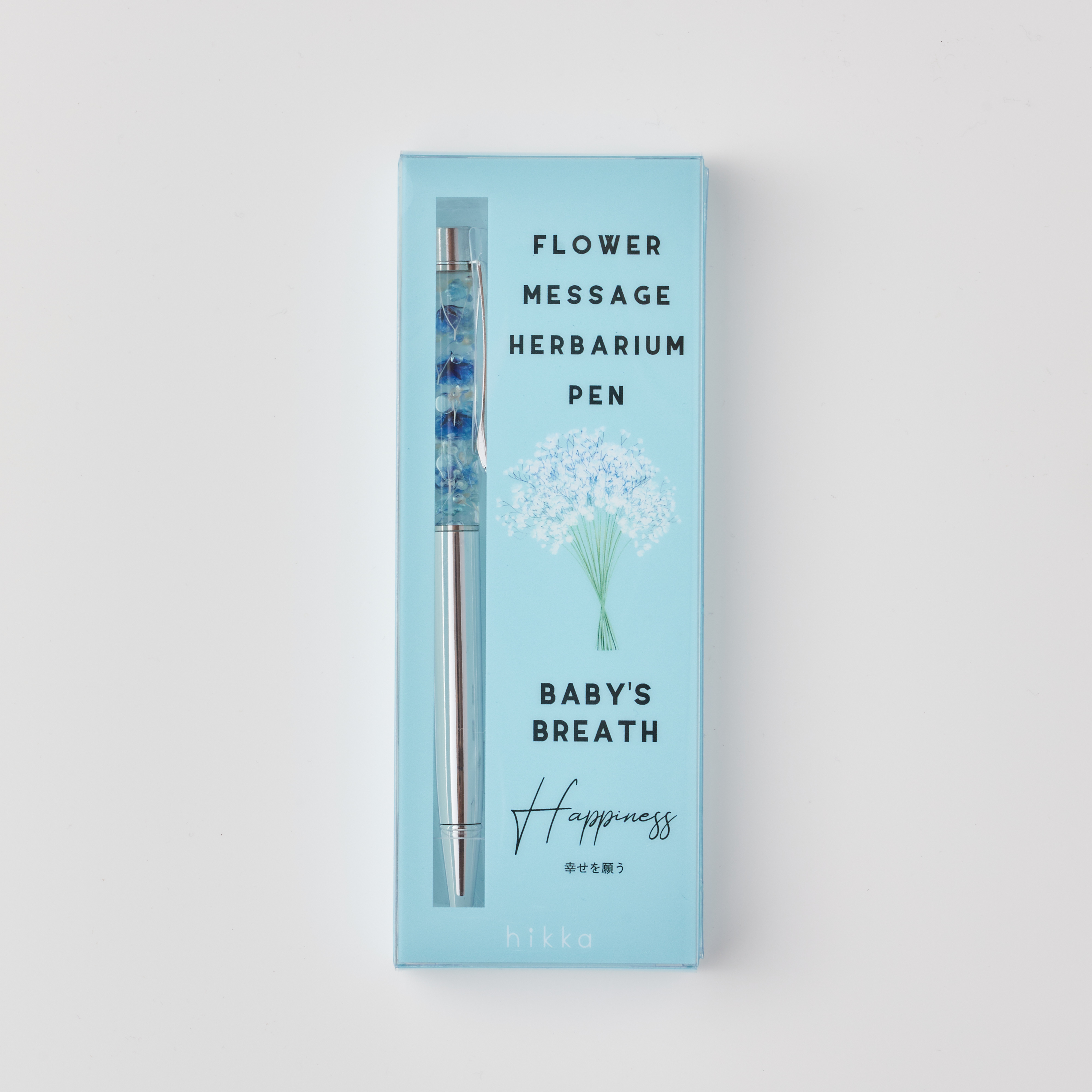 メッセージと一緒に贈れるハーバリウムボールペン。使用している花の花言葉がパッケージに入っています。贈る方へのメッセージやイメージに合わせて選んだり、好きな花、色でも選べます。