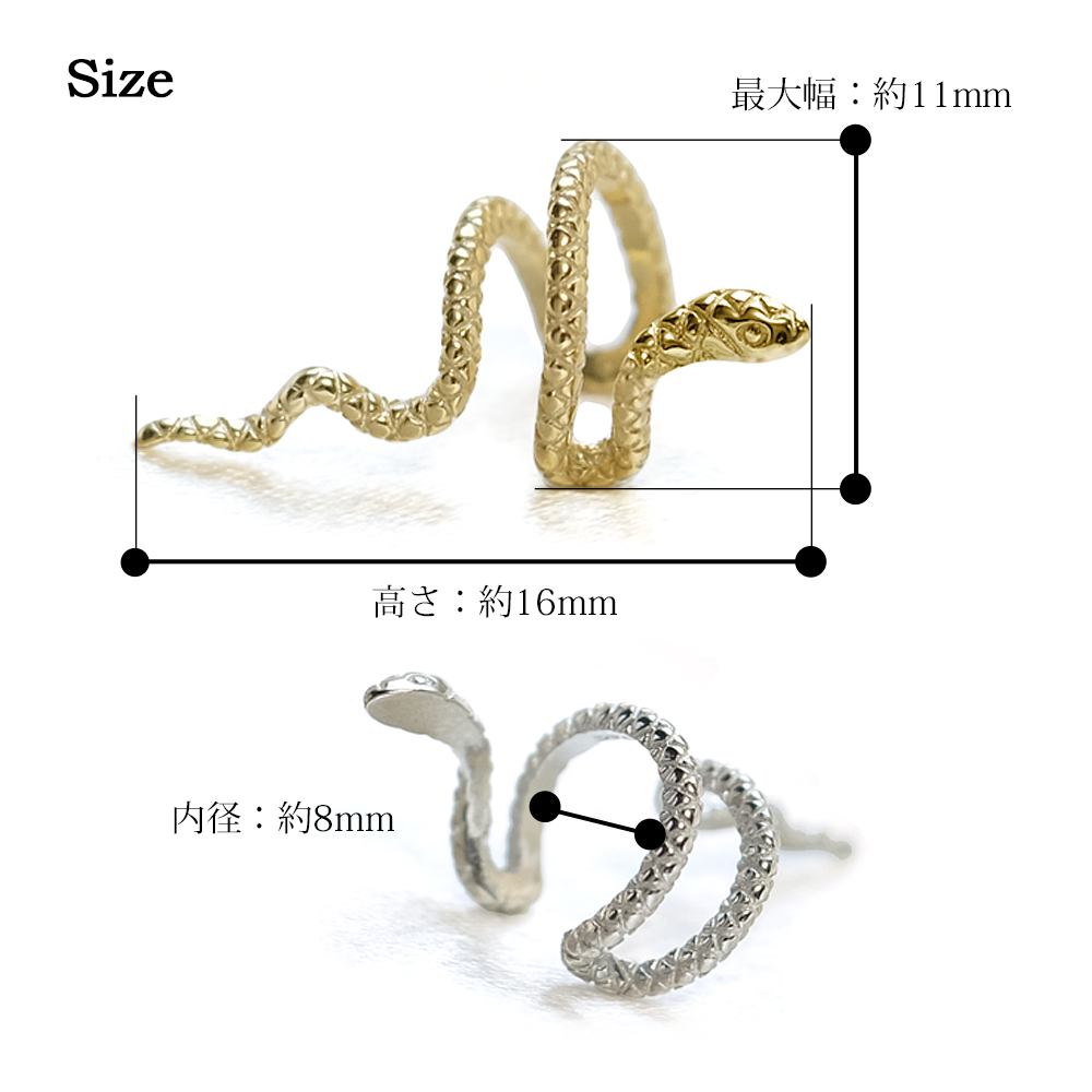 留め具などのパーツがなく、イヤーカフ全体がスネークになっているので、 どこから見てもインパクトのあるデザインです。