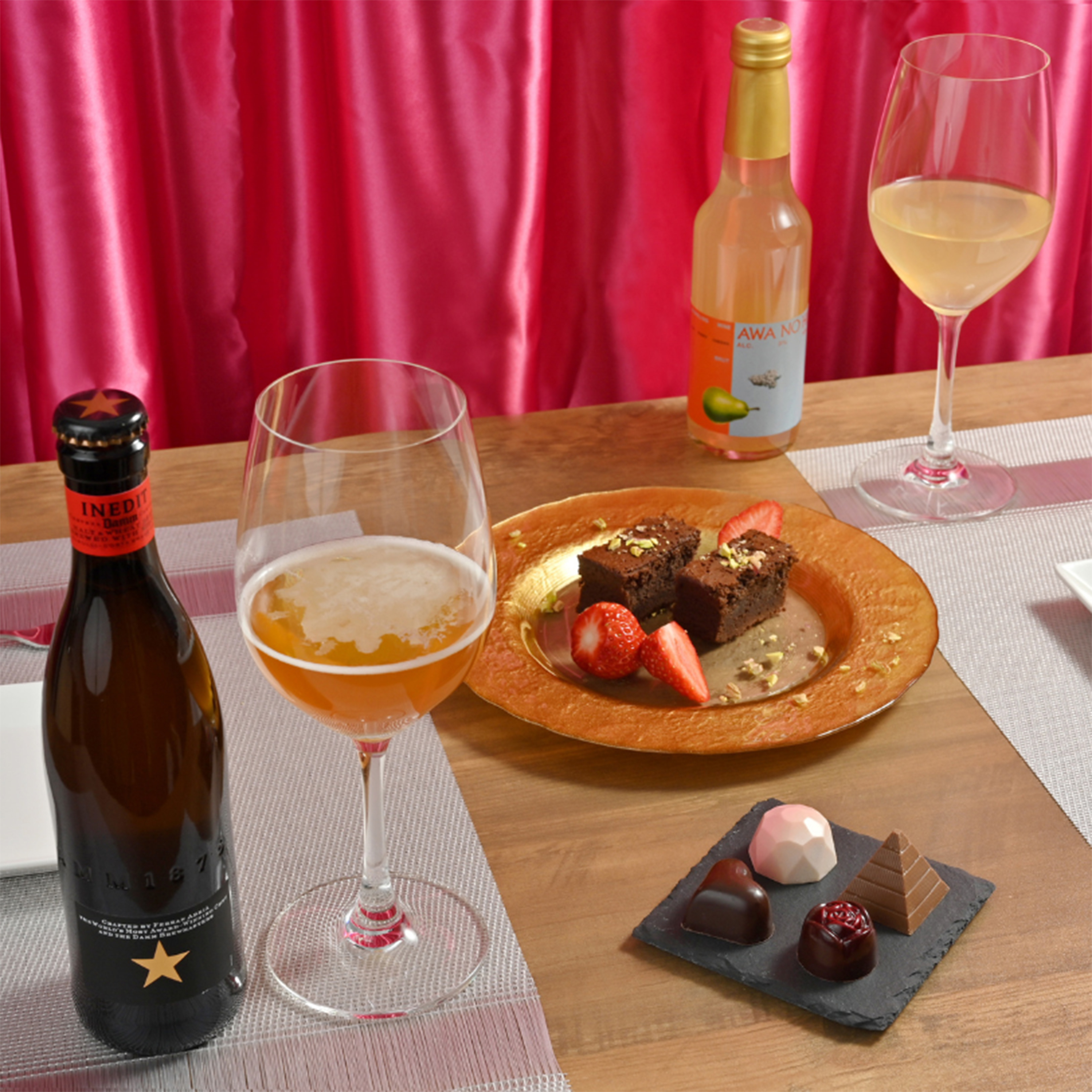 ミシュラン星付きレストランで採⽤された⾼級ビールは、上質な味わいにこだわり、リラックスして楽しめる⼀杯に。そして洋ナシのスパークリングは、晩酌する際にさわやかな味わいを楽しむことができる贅沢なアイテム。
