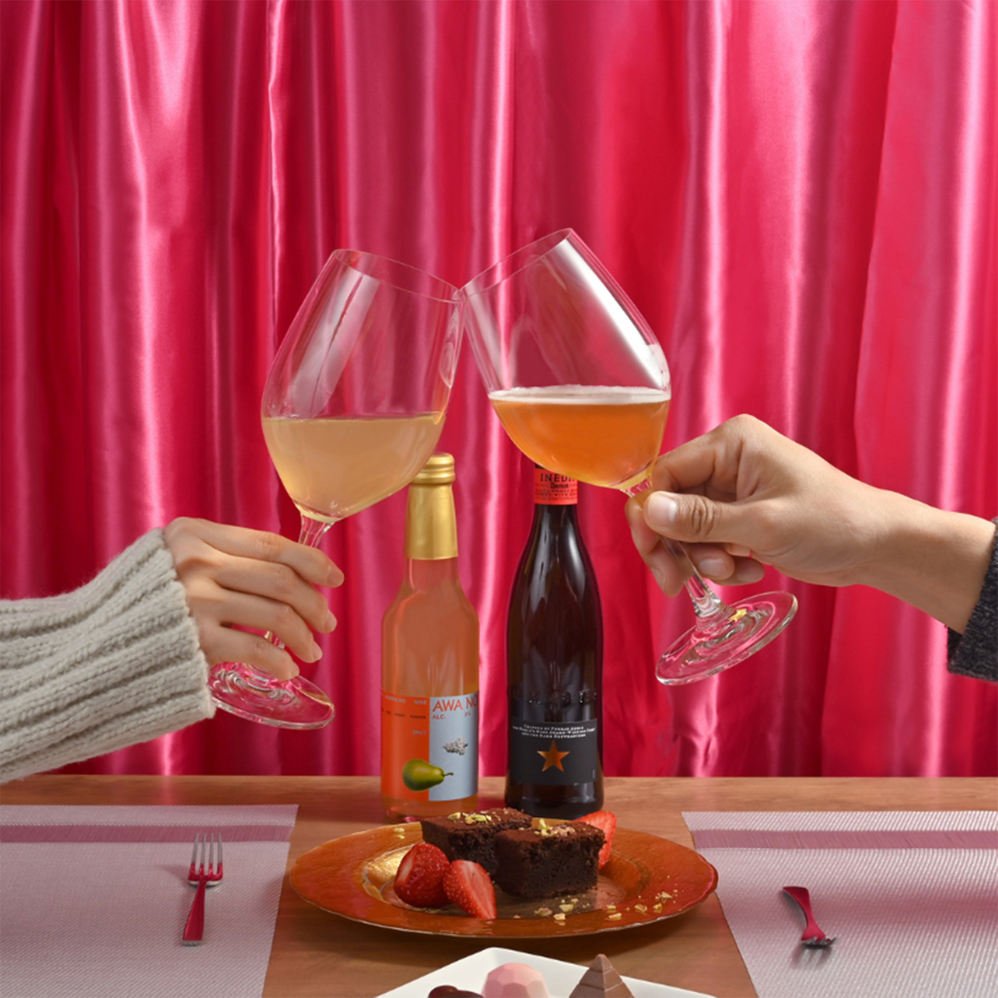 INEDITも、AWANOHI Pear Brutも、繊細な⾹りや味わいが特徴のお酒。 飲む前に冷蔵庫で冷やし、ぜひワイングラスやシャンパングラスにいれ、泡と⾹りを楽しみながら味わってください。