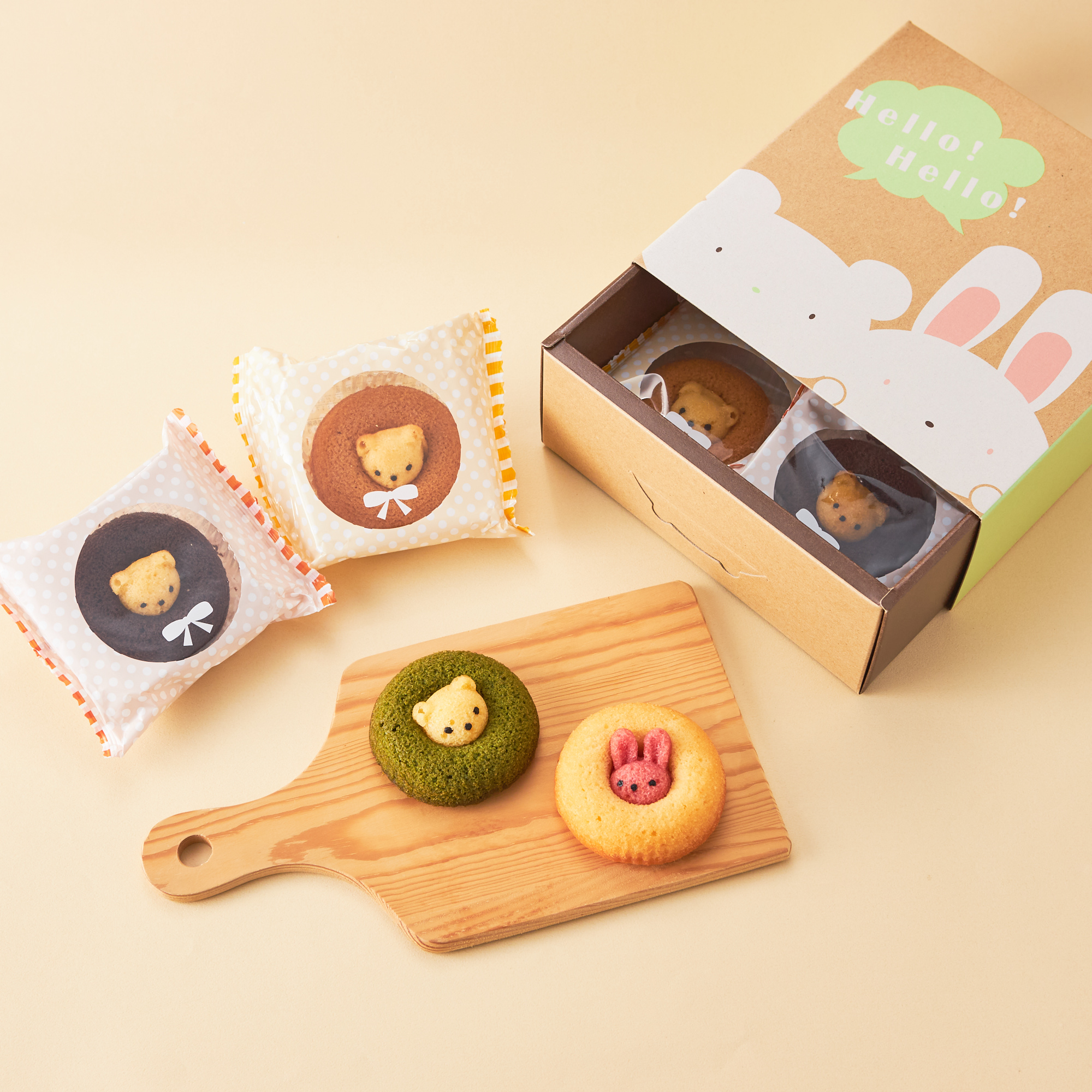 ・うさぎイチゴ ・うさぎプレーン ・くまチョコ ・くま抹茶 各1個
