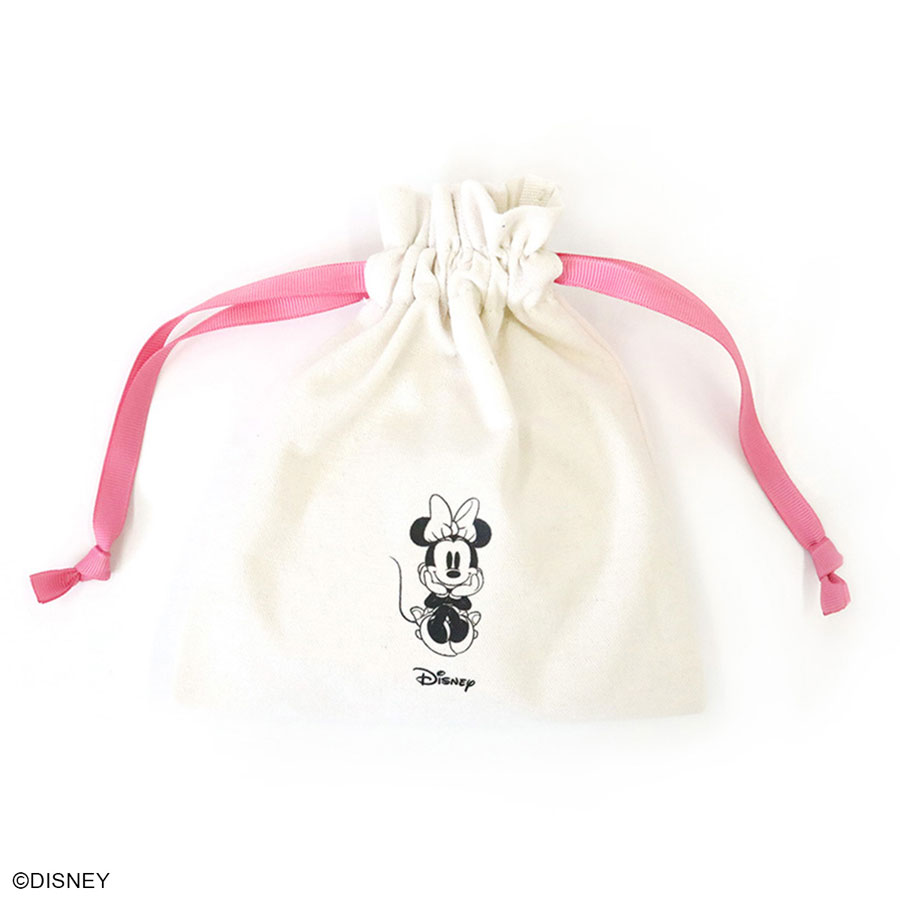 かわいいディズニーキャラクターごとに合わせたカラーリボンが特徴的なキャンバス巾着ポーチと、花びらが瓶の中で舞うネイルオイルのセット。おしゃれなギフトボックスに入れてお届けするのでプレゼントにぴったりです。