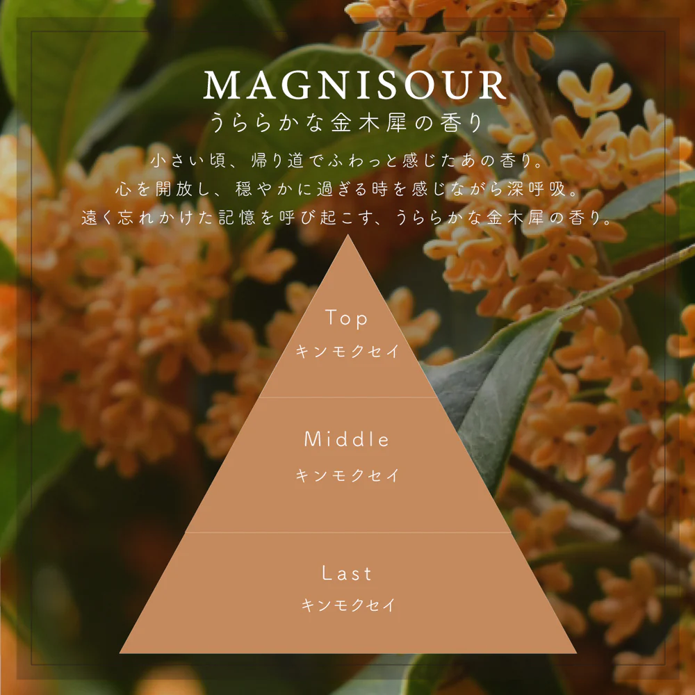 優れた調香師が丸1年かけて本物に近い香りに仕上げた自信作です。金木犀の開花期間は短く、一週間ほどです。どこにいても金木犀の香りを長く楽しめたら良いのに…そんな想いから金木犀シリーズは生まれました。 再現することが非常に難しいとされる金木犀の香りは、Botanicfolkでも一番人気の香りです。本物に近いやさしい香りなので 、強い香りが苦手な方でも 使っていただきやすくなっております。香水と同じ、高品質な香料を配合しています。 金木犀は、古くからヨーロッパでは潜在意識を高めて願いを叶える香りと言われてきました。 心をオープンしてくれる香りと言われていることからスピリチュアルな場面では金木犀が重宝されています。