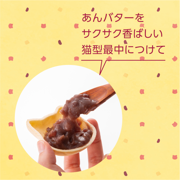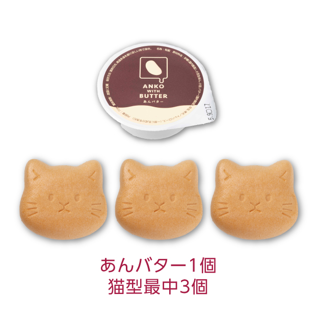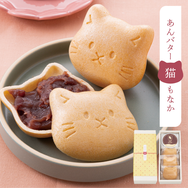 猫型の最中とあんバターのセット。猫型最中が可愛らしく、手土産(おもたせ)にしても喜ばれます。