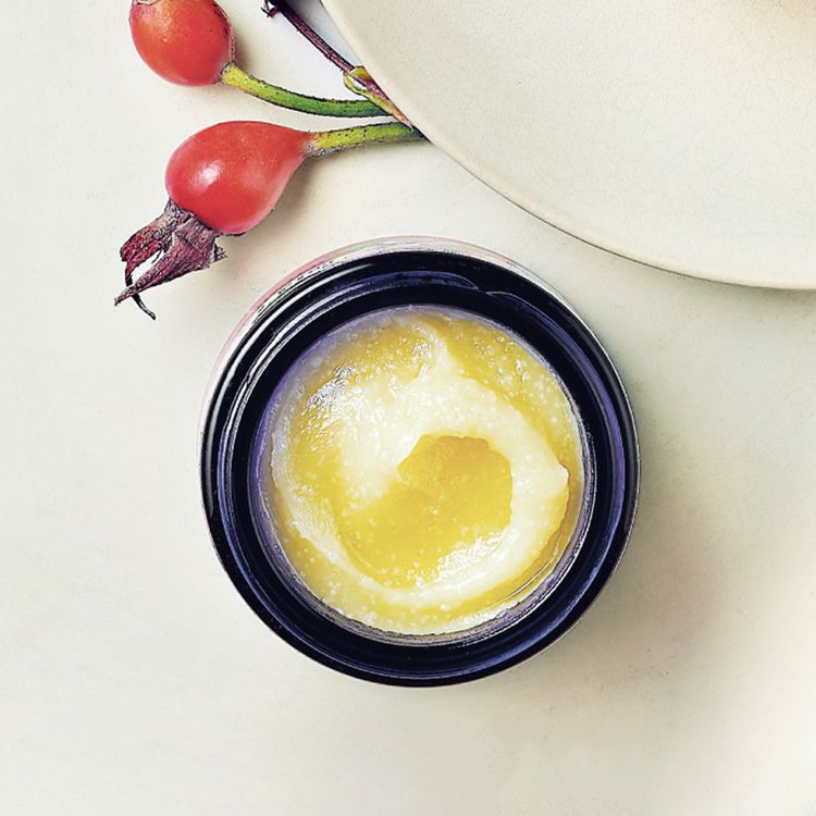 贅沢な潤いで肌をぴったりと包み込み、植物の美容成分を角層のすみずみまでじっくり届けます。 種子オイルの潤い:ルリジサ種子油(ボリジ)、ホホバ種子油、アサ種子油、 潤いをコーティング:シアバター、ミツロウ