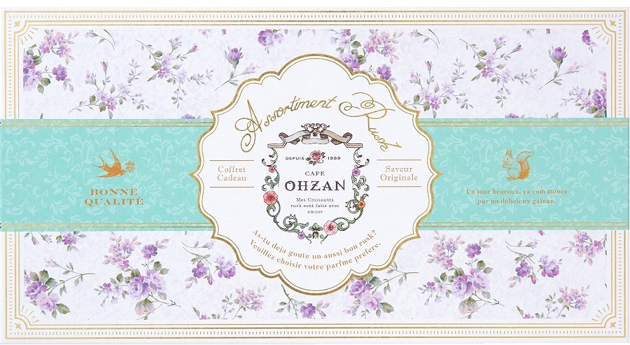 CAFE OHZANのブランドロゴと花をあしらった、華やかさと高級感のあるデザインです。贈られた方が笑顔になる大人可愛いパッケージです。