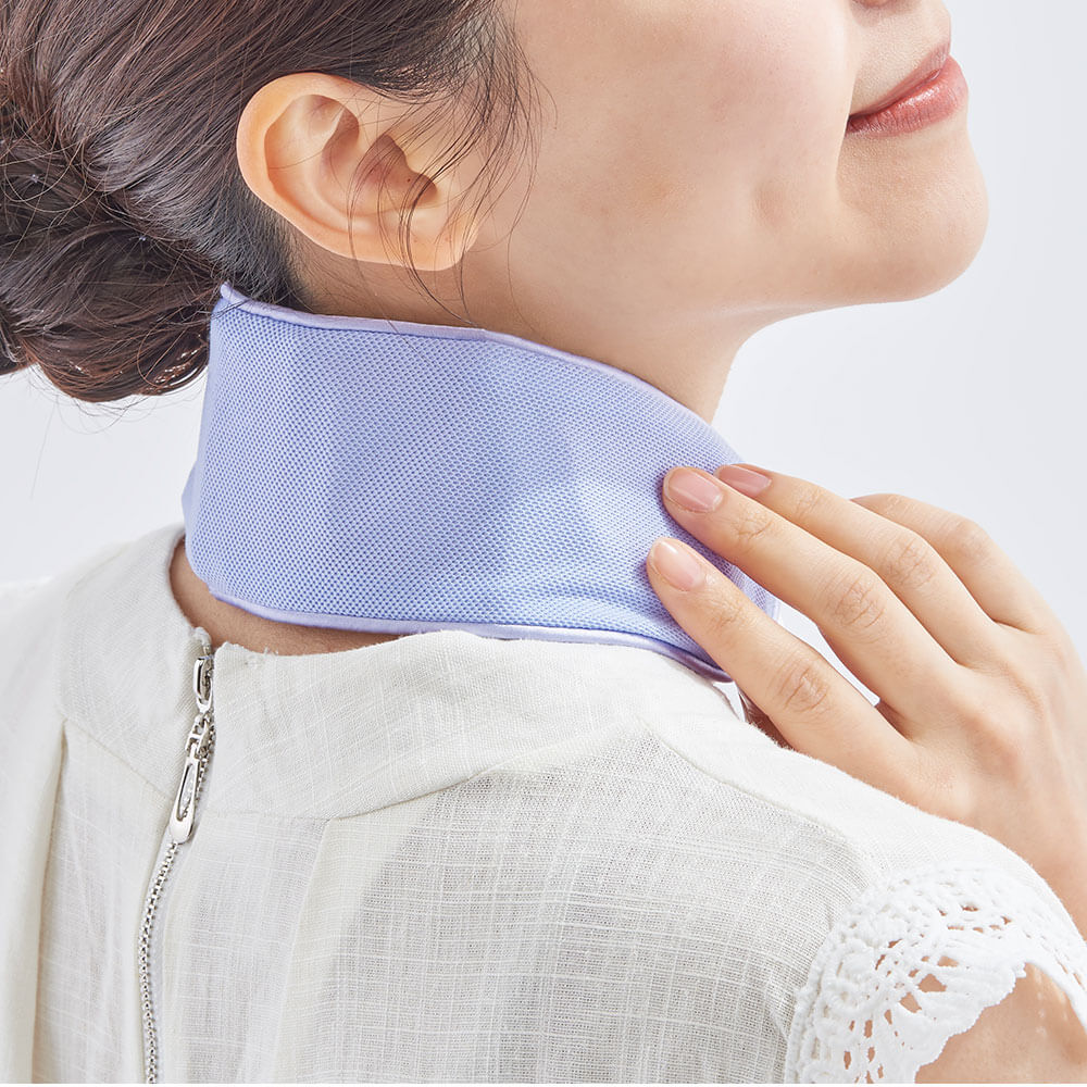 冷凍庫で凍結させて首に巻く、付け襟のようなアイスカラーです。首元を冷やして、手軽に暑さ対策!
