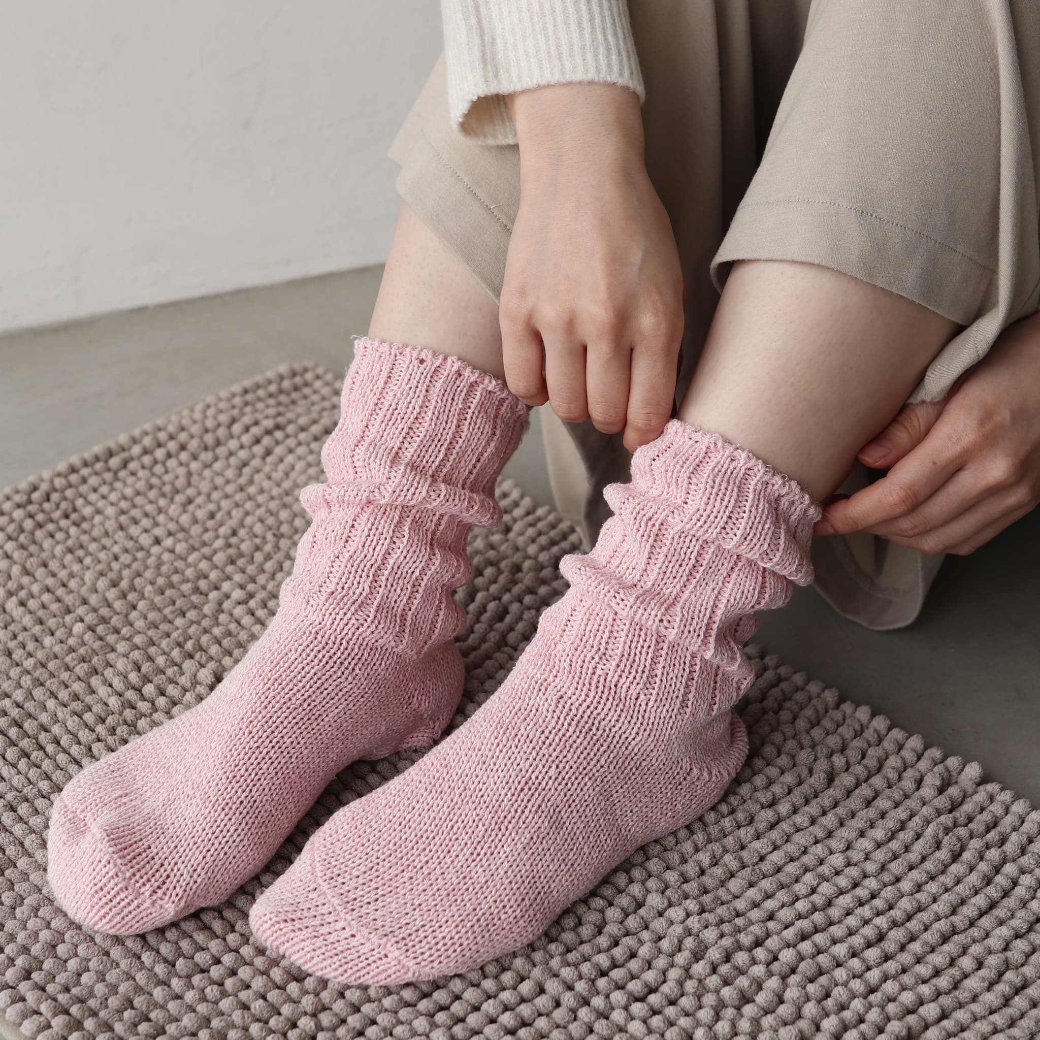 湯上がり靴下というまさにお風呂上がりの冷え対策に履いていただきたい靴下です。寒い秋冬のシーンでも、春夏の冷房をつけて就寝するシーンでも大活躍の靴下です。