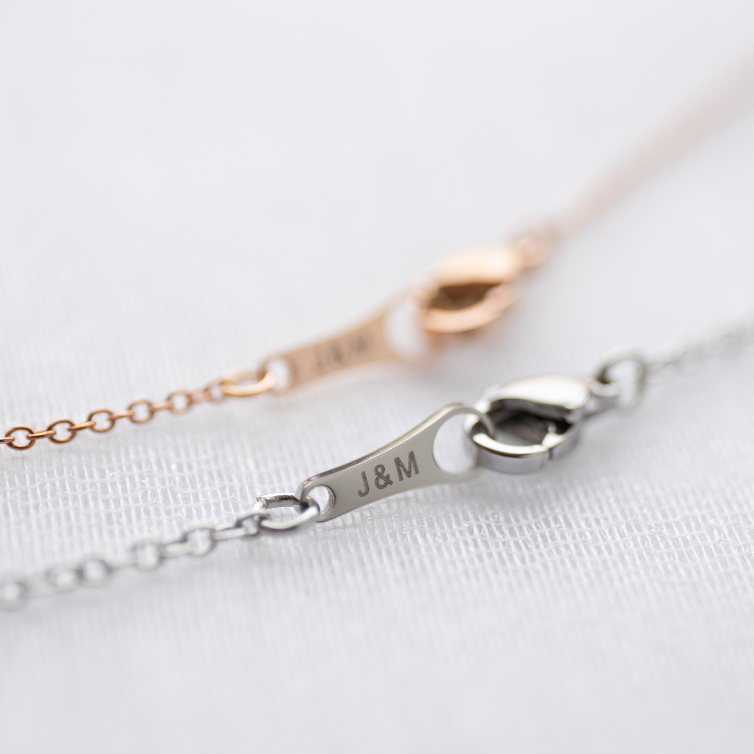 カラーはシルバーとピンクゴールドの2種類。 留め金のプレート部分には【ご希望の英数字4文字まで】を彫刻してしてお届けいたします。 (オプション選択画面にてお選びいただけます。)