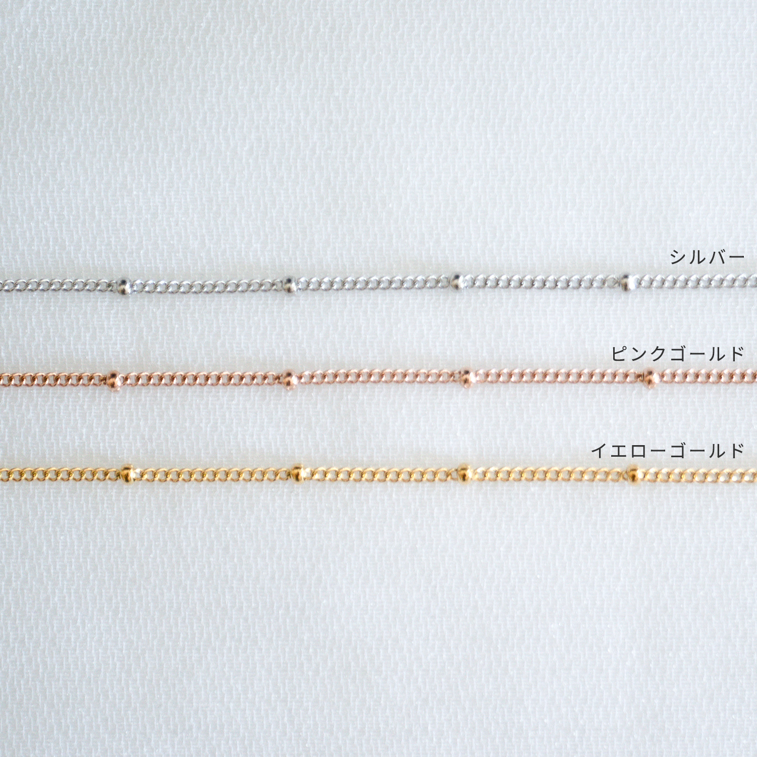| サイズ | ・メンズチェーン チェーン幅:約1.9mm ビーズ幅:約3.2mm ・レディースチェーン チェーン幅:約1.4mm ビーズ幅:約2.2mm |