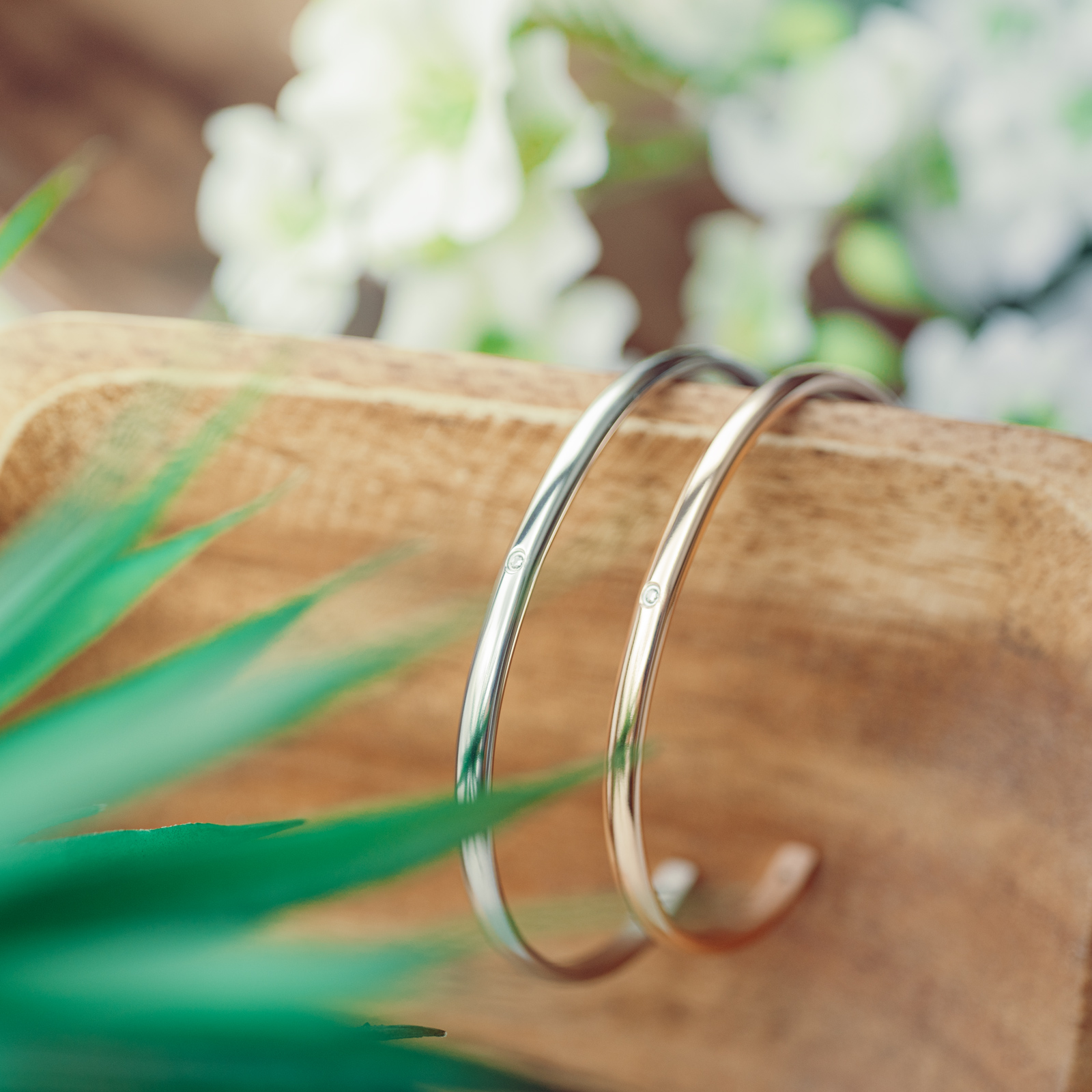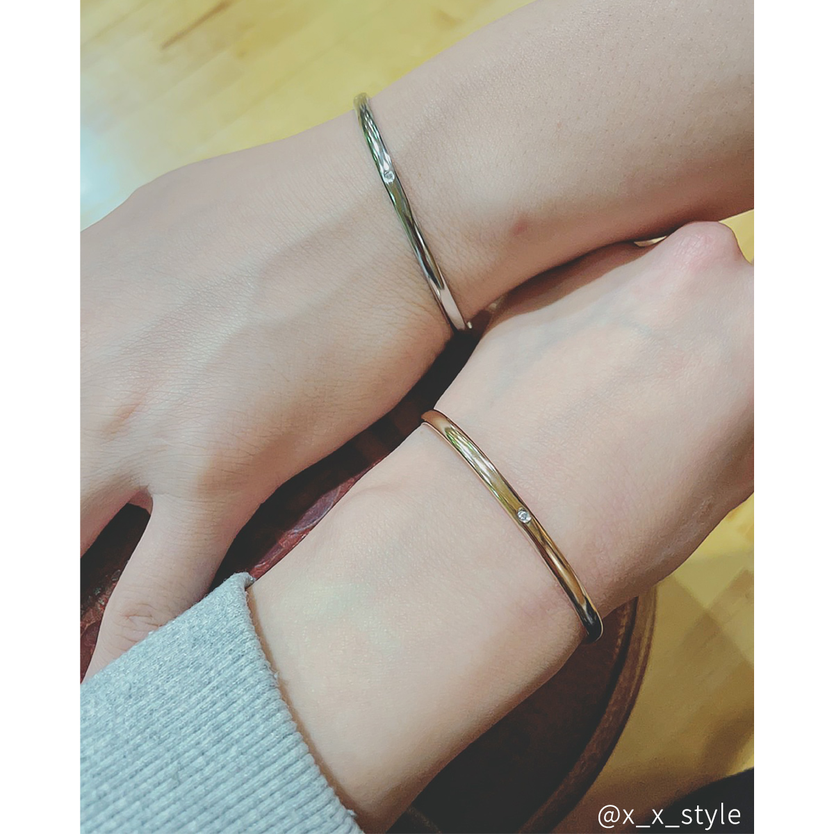 素材はステンレス製。金属アレルギー対応ですので敏感肌の方にもおすすめです。 また、ご入浴や海水浴等でご使用頂いても変色や劣化を起こしにくい素材です。 ※製作の関係上バングルの端に小さな孔がございますが、不良品ではございませんので予めご了承ください。