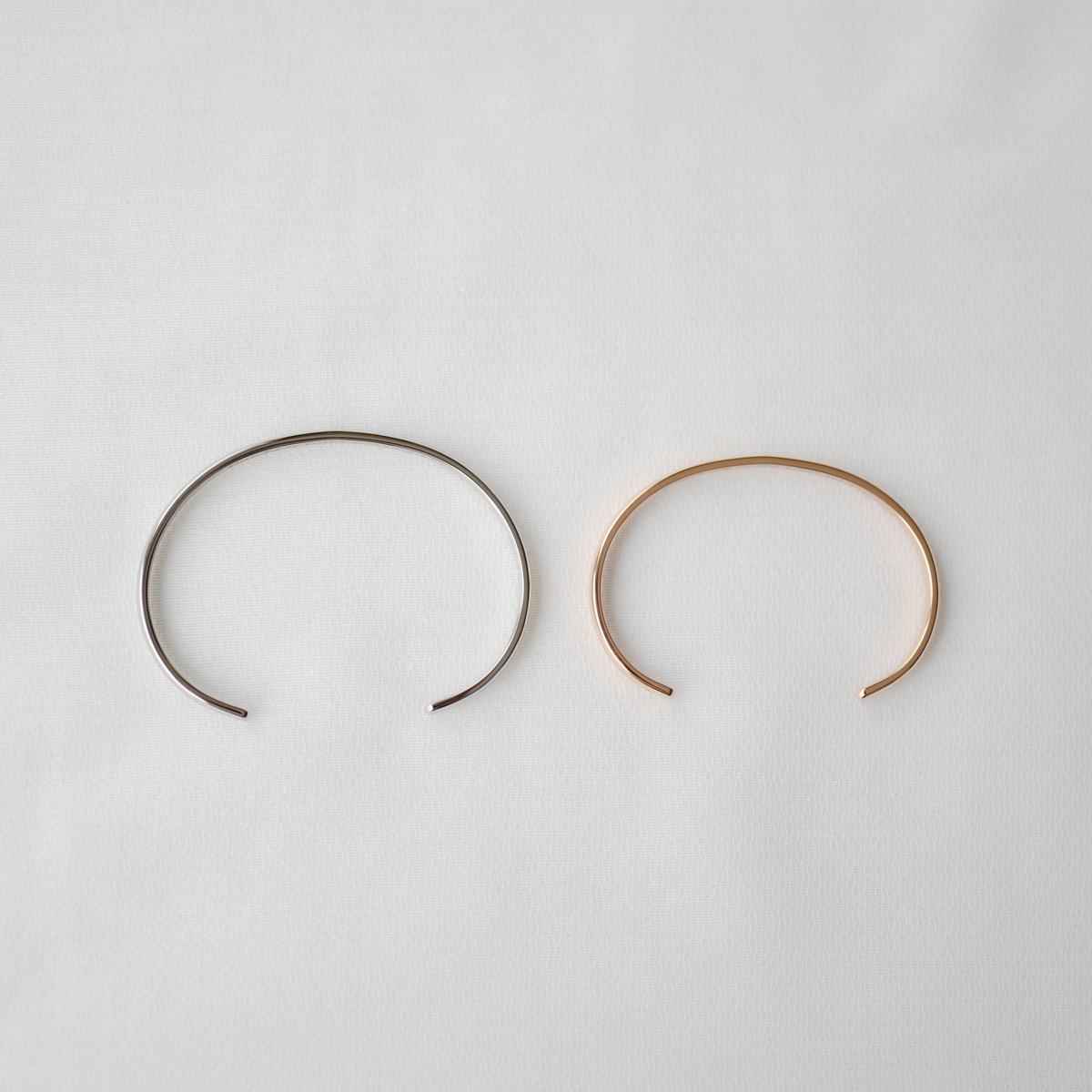 ありそうでなかった「サージカルステンレス製」のスタンダードな甲丸ペアバングル。