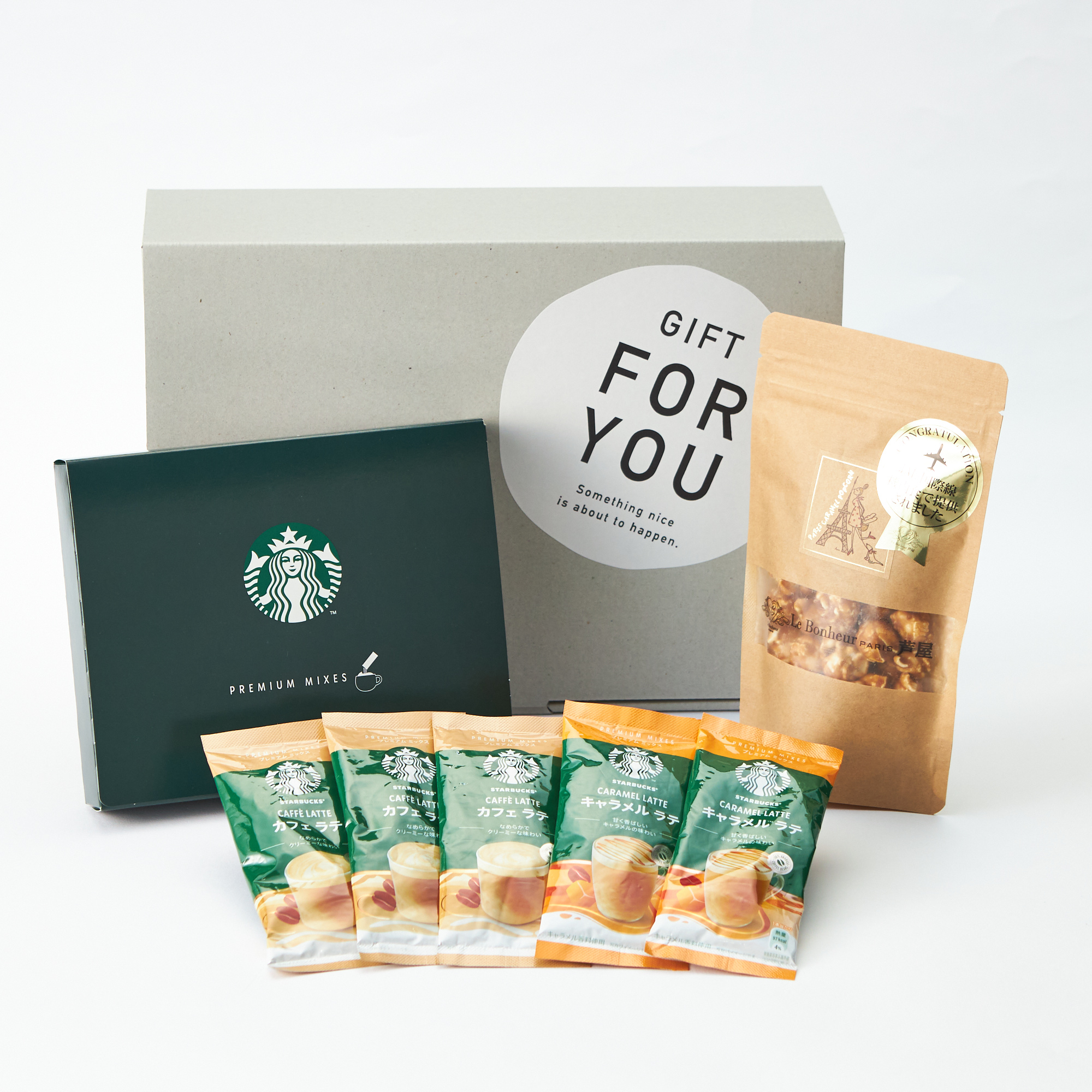 大口注文・法人のお問い合わせはこちら素材の旨味を感じるポップコーンとおうちでもスターバックスコーヒーが楽しめるセット。お好きなギフトボックスはに入れてお届けします。