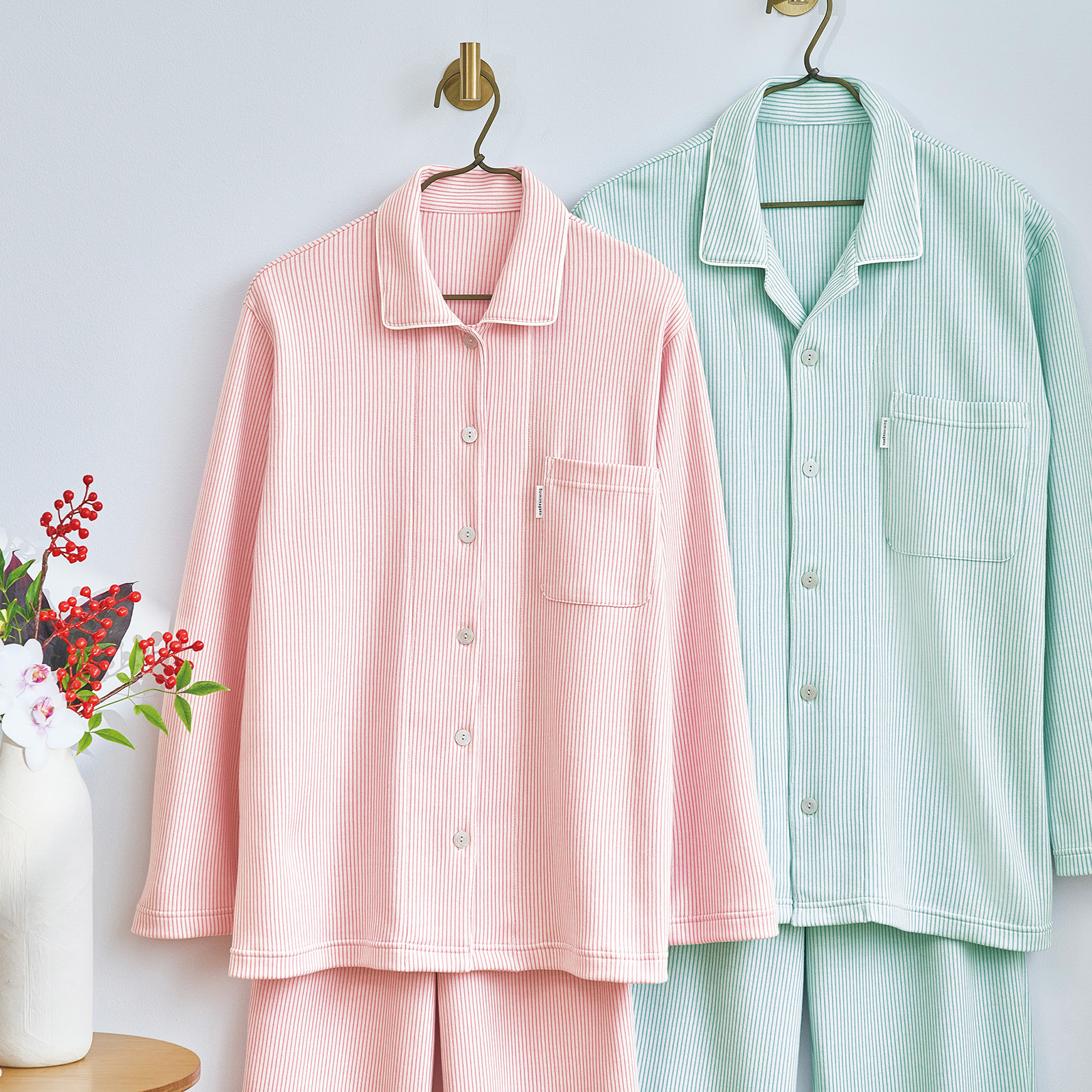 しっとりなめらかふわふわ触感の「ふわごころ」パジャマ。 M/Lサイズよりお選びいただけます。