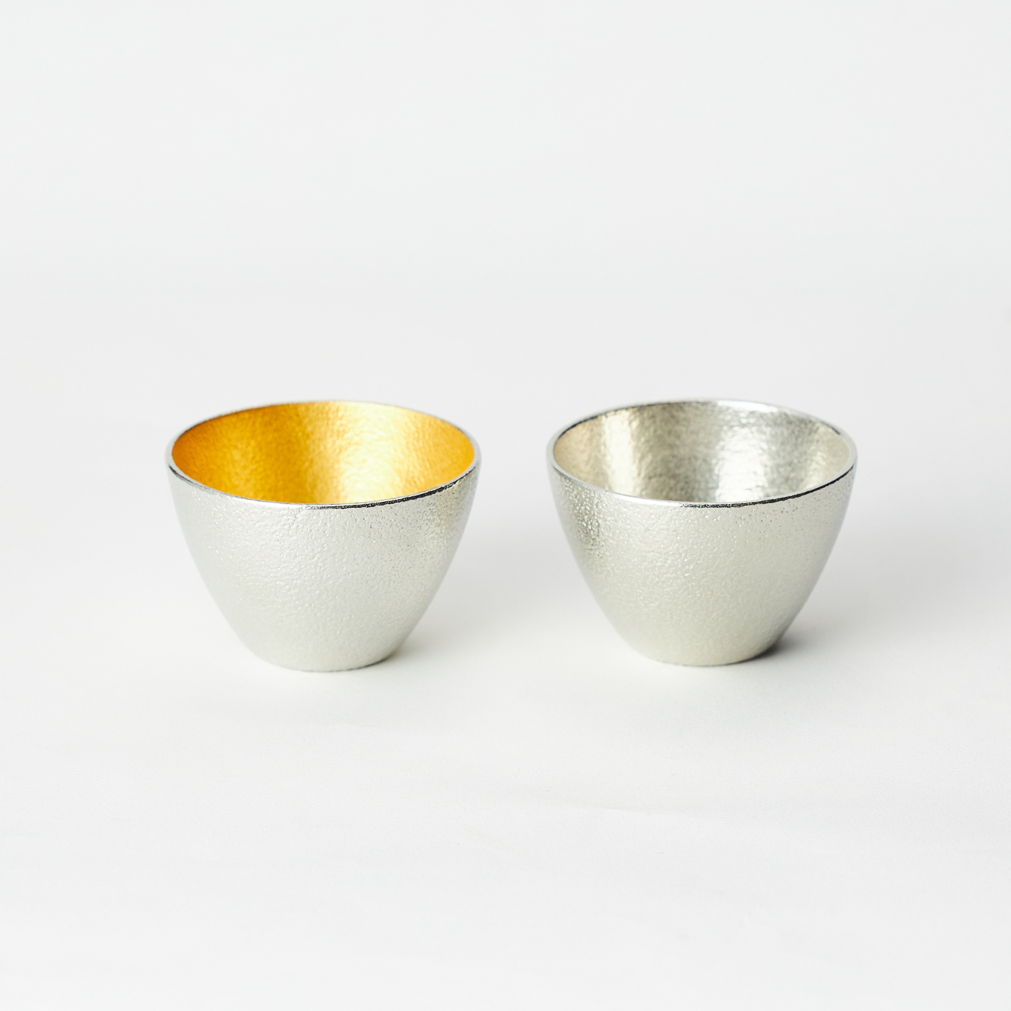 大口注文・法人のお問い合わせはこちらぐい吞みは錫100%と内側に金箔を施した2種類からお選びいただけます。 結婚祝いや記念日などの特別なプレゼントにいかがでしょうか?