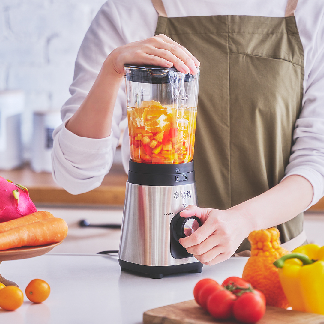 旬のフルーツや野菜を取り入れた、フレッシュジュースをヘルシーな毎朝のルーティンに。600mlのコンパクトサイズながら300Wのハイパワーで、操作もお手入れも簡単。ベーシックブレンダーで野菜・果物不足を解消。