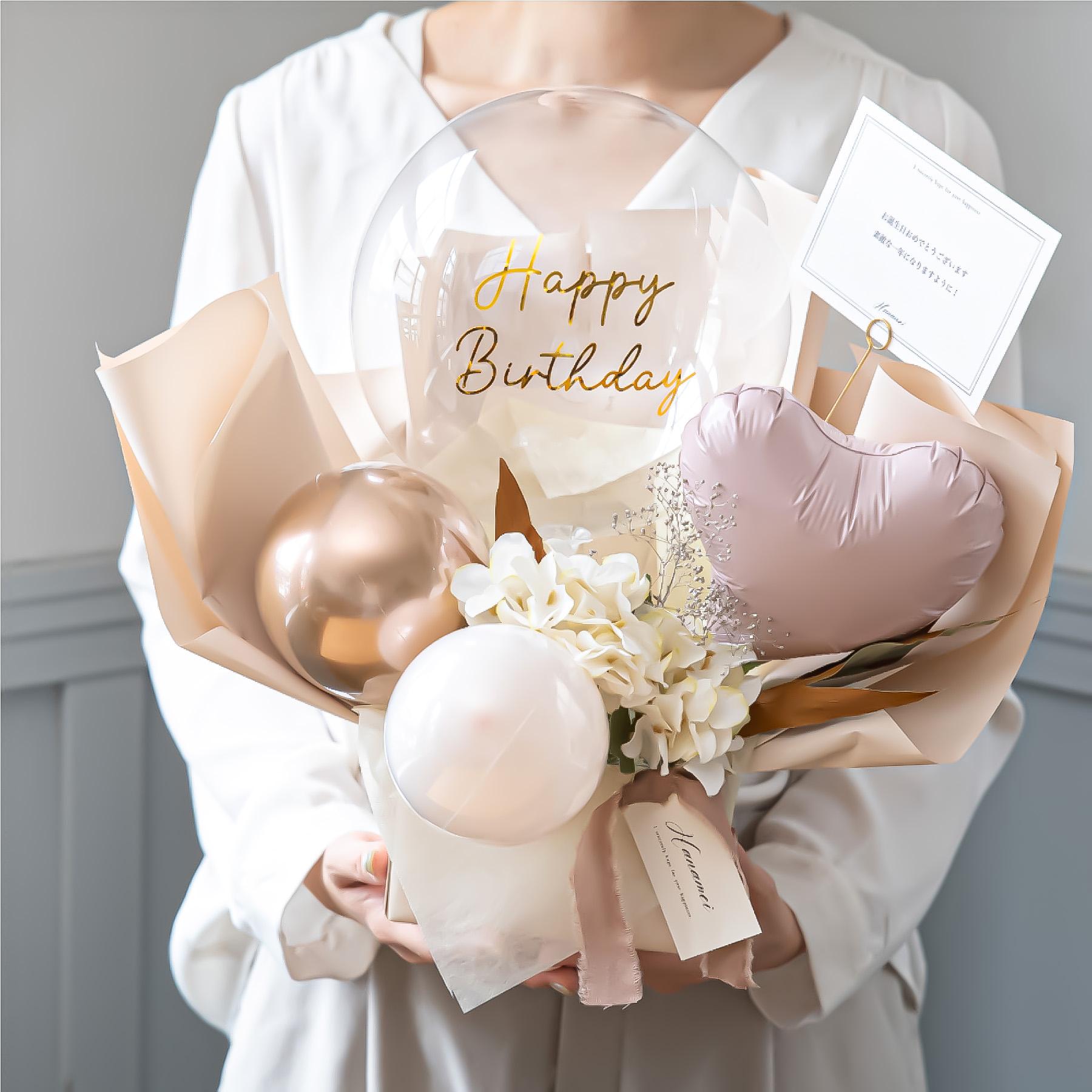 | 素材 | バルーン:ゴム・ポリウレタン素材 造花:ポリエステル ドライフラワー |