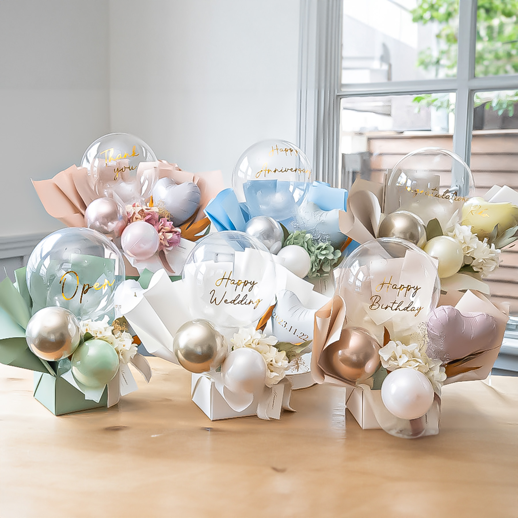 すぐに飾れる華やかなバルーンギフトボックスです。軽量で持ち運びもしやすく、お手入れ不要なので、長らく飾ってお楽しみいただけます。カスタマイズ可能で名前や特別な日付を追加でき、様々な記念日やイベントに最適。