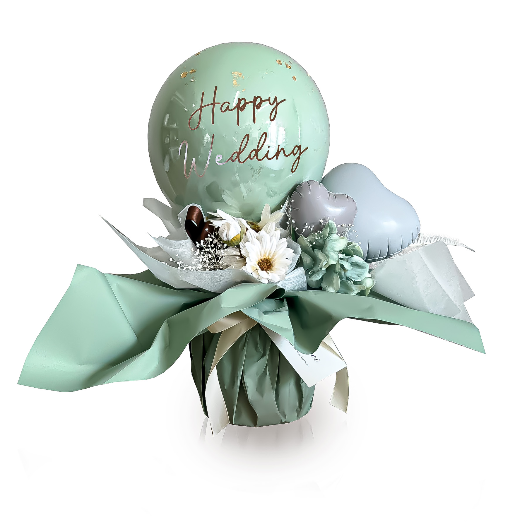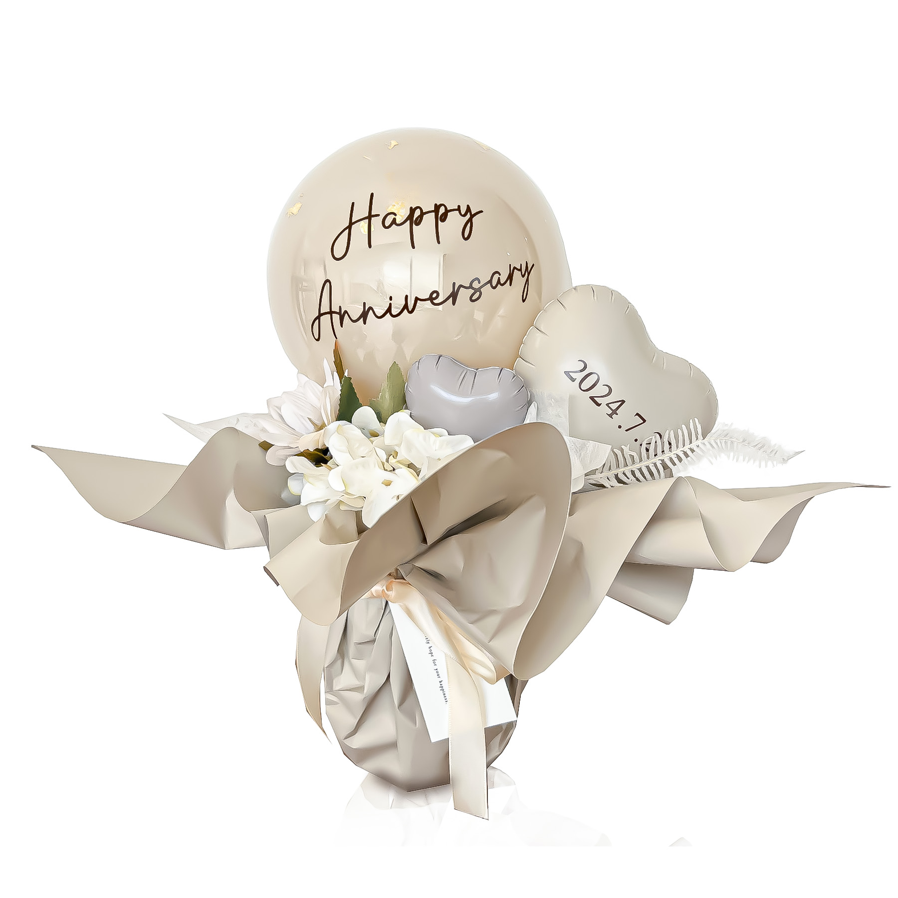 大口注文・法人のお問い合わせはこちらくすみカラーなので、インテリアに馴染みもよく会場やお店、お家にも飾りやすいのが特徴。 金箔入りのバルーンが上品でエレガント。 ブラウンの文字とリボンがアクセントになり、まるでドルチェのようなかわいいバルーンギフトです。