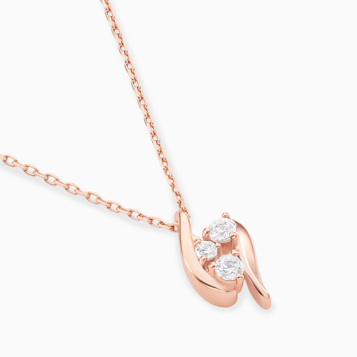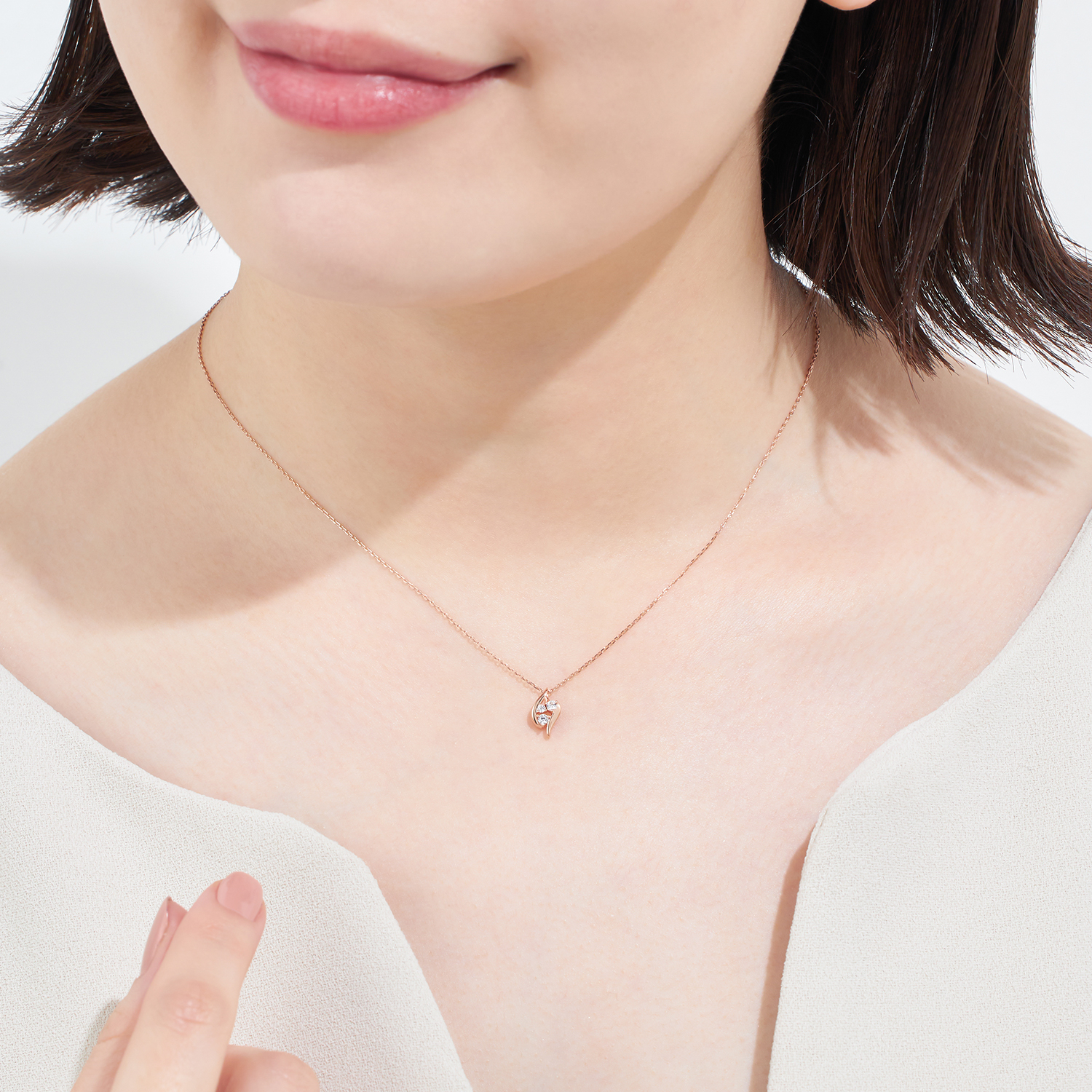 大口注文・法人のお問い合わせはこちら柔らかなウェーブのラインに包まれたキュービックジルコニアが、デコルテで上品にきらめくネックレスです。 着けるたびに風合いを増しながら、ピンクゴールドの優美な輝きをより長くお楽しみいただけます。