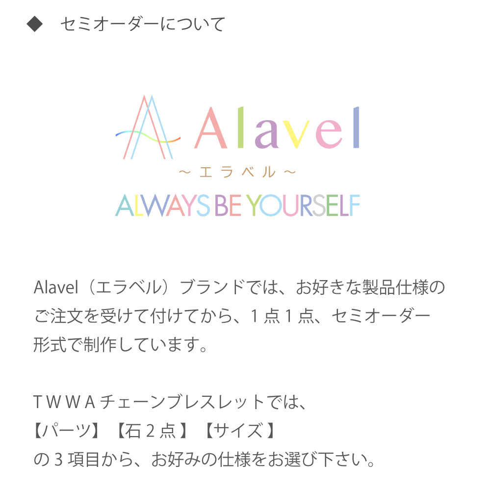 小さくて、いつも身に着けていられるモノ。 それがアクセサリーです。 古来よりお守りや魔除けとして、また大切な絆 の象徴として親しまれてきました。 そんな特別なモノだからこそ、あなたらしい想い が込められてほしい。 わたしたちはそう考えます。 あなたの言葉を あなたの気持ちを あなたの願いを あなたの絆を あなたらしい、 特別な象徴。 わたしたちは、そんなアクセサリーを、ファストなセミオーダーでお作りしています。