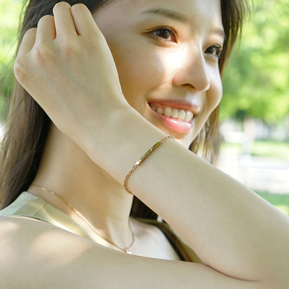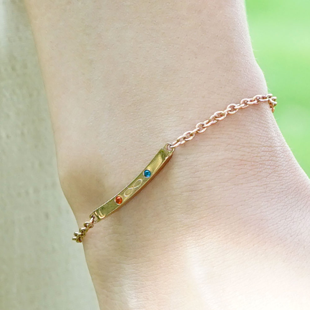 2人を象徴するような、2石の誕生月カラーストーンを、それぞれのお好きなパーツに石留めいたします。石は1.75mm のさり気ないサイズ。身に着ける人の日常に、 そっと溶け込みます。お好きな言葉を、無料で刻印いたします。