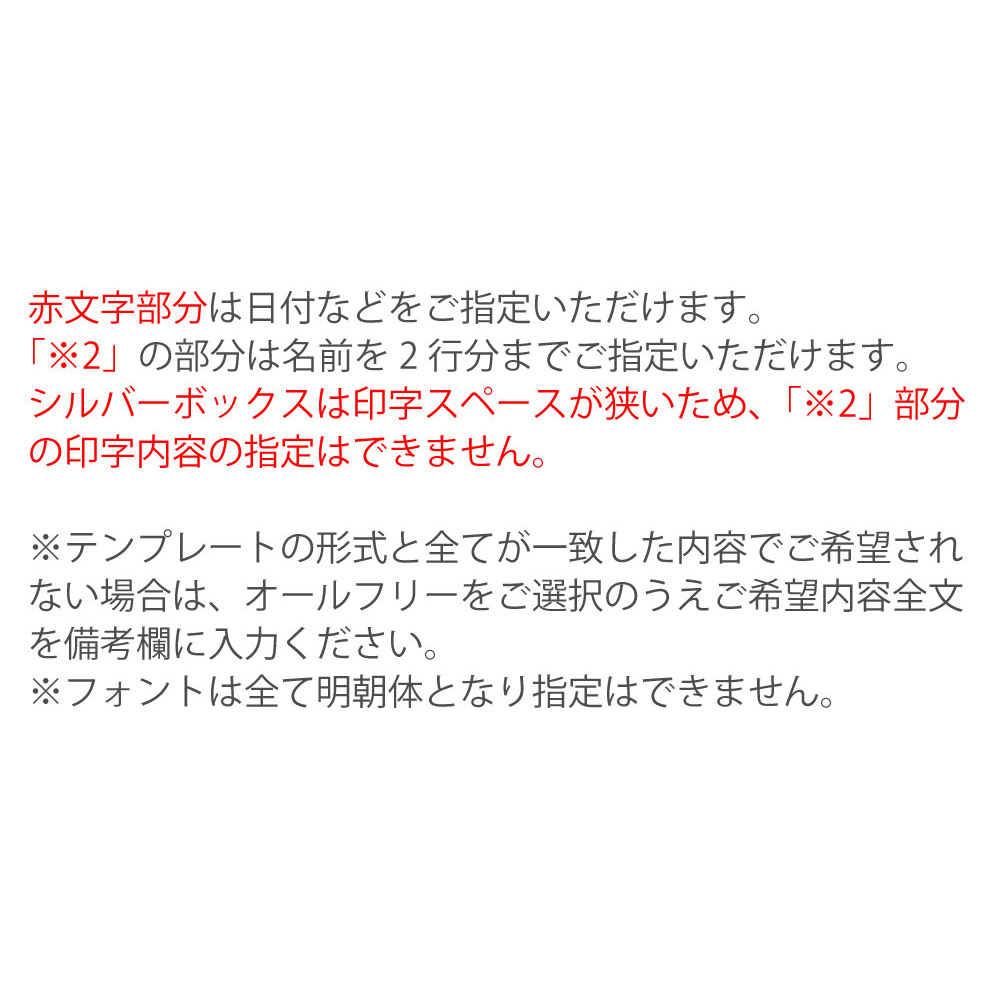 有料のソープフラワーボックスをご選択された場合は、上記箇所に印字となります。 [シルバーボックス印字例]