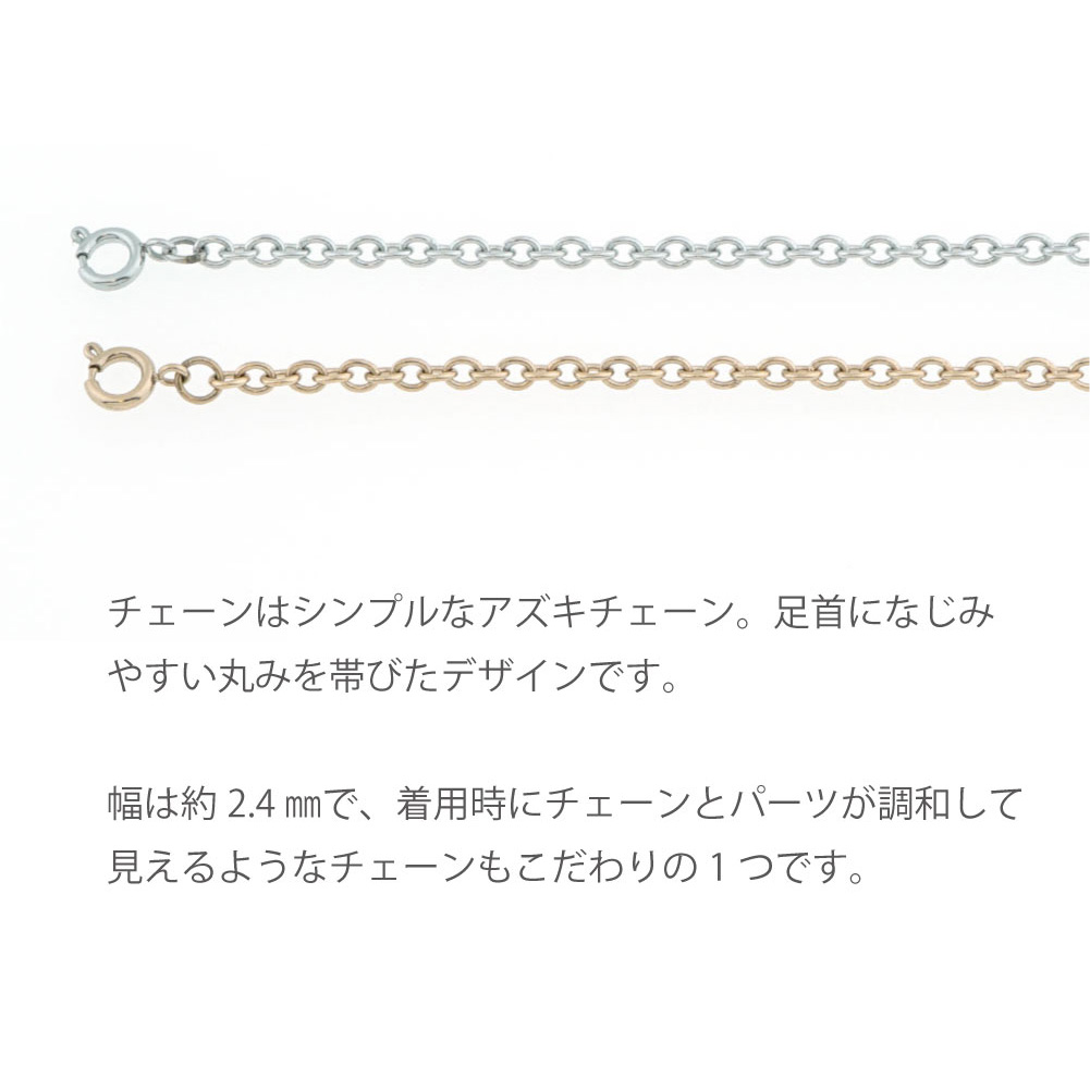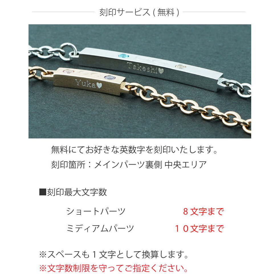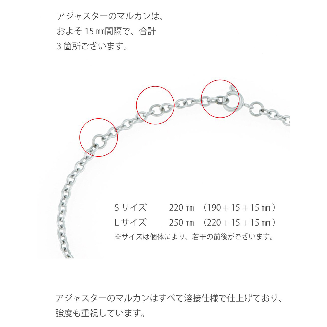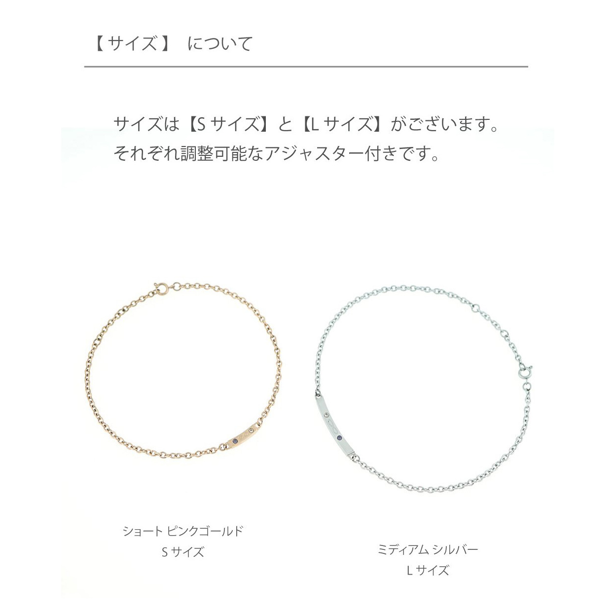 | サイズ | パーツ ショート 横16mm 幅2.2mm 高さ2.7mm ミディアム 横29mm 幅2.2mm 高さ2.7mm チェーン 幅約2.4mm あずきチェーン 石 1.75mm キュービックジルコニア サイズ Sサイズ 全長約220mm (190mm + 15mm + 15mm) Lサイズ 全長約250mm (220mm + 15mm + 15mm) |