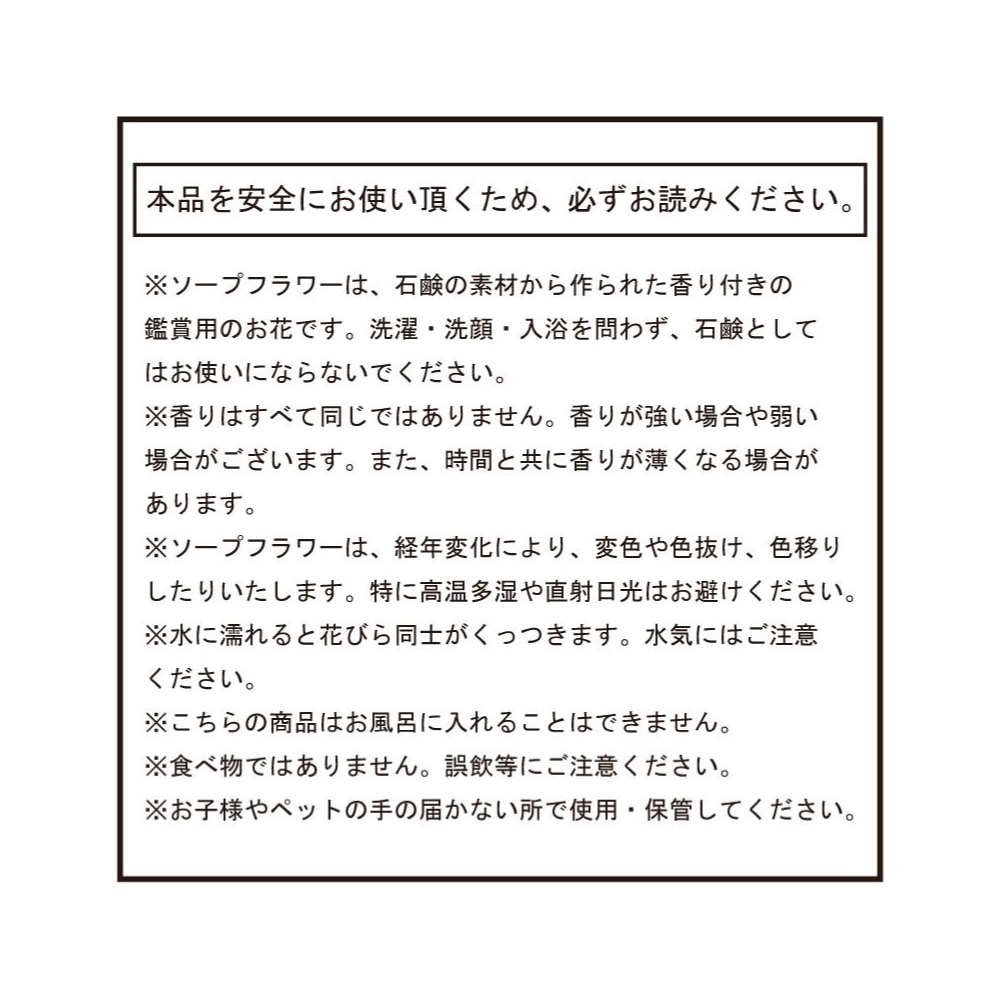 2つのソープフラワーは個性豊かな9色バリエーションからお選びください。 【製品仕様】 サイズ:6.5cm×6.5cm×4.7cm 素材:フラワーオーナメント2個 石鹸 ボックス本体 紙 ※ソープフラワーは入荷時期により、色のばらつきや濃淡など個体差が出る場合がございます。 〇neuf(ヌフ)